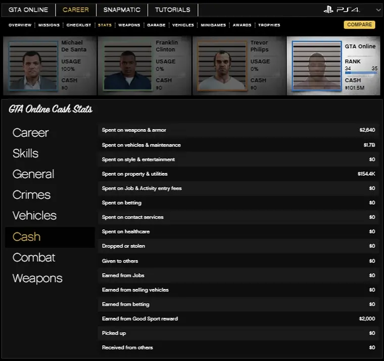 [PS4] Dual Character GTA 5 Modded Account ✦ Legendary Power Pack ✦ 1.5 Billion (101M Cash + 510 Cars) | RP Rank 30 | Instant Delivery | Full Access | OF22