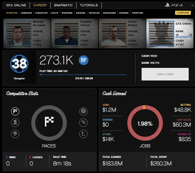 [PS4] Dual Character GTA 5 Modded Account ✦ Outfit Master Vault ✦ 1.5 Billion (0.016M Cash + 512 Cars + 10 Outfits) | RP Rank 35 | Instant Delivery | Full Access | OF21
