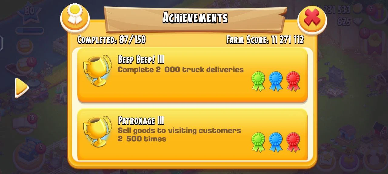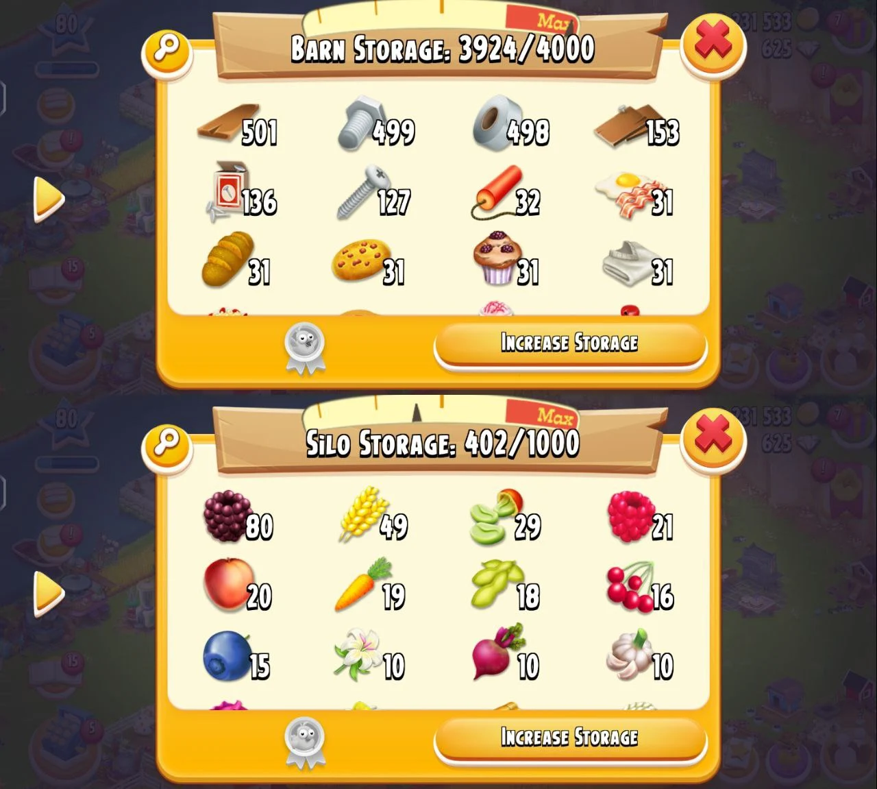 | HIGH DIAMOND LEVEL 80 | BARN 4924:4000 | SILO 402:1000 | 3.2 MILLON COINS | 625 DIAMOND | FARM SCORE:11271112 |