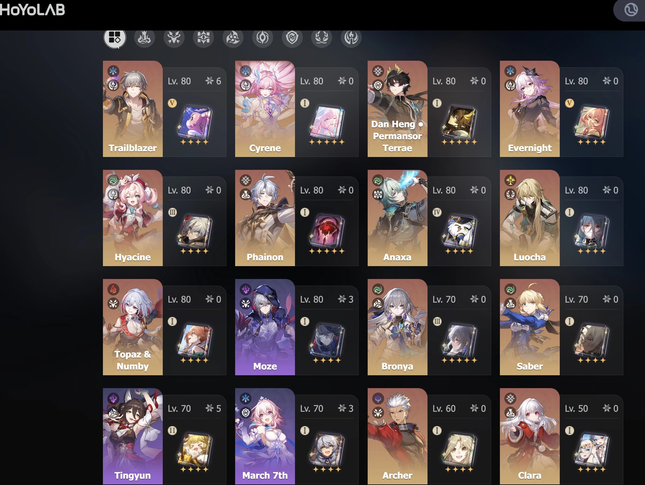 Cyrene Evelyn Hyacine Phainon Anaxa Topaz ar67
