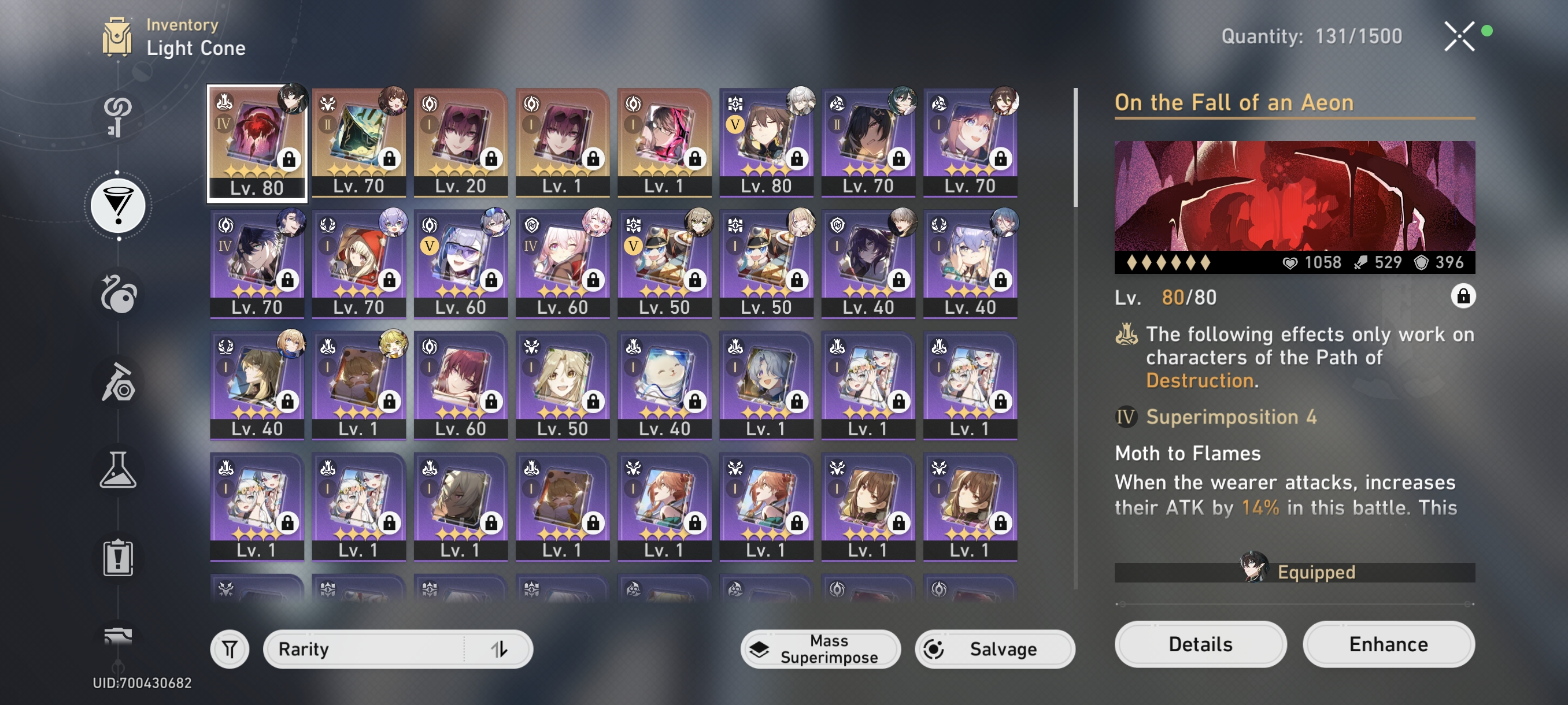 EUW . 65 TL + 5 Light Cones + 25 Characters + Genshin Impact . 50 AR + 34 Characters + 1 Legendary Weapon