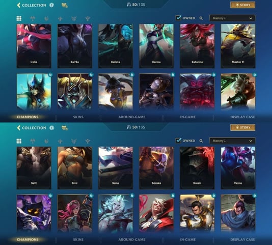 Contas com muitos campeões para flexibilidade estratégica