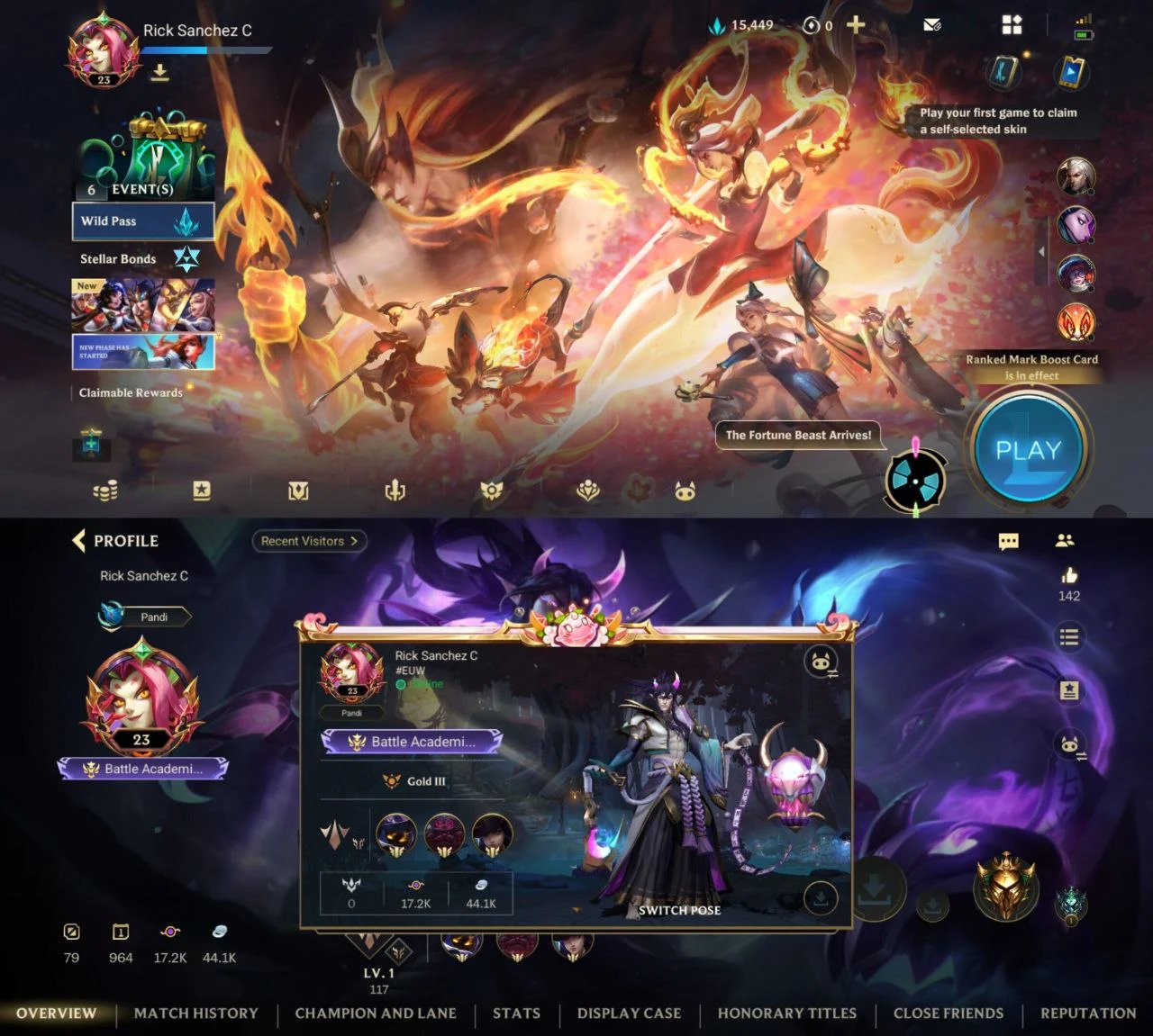 iOS/Android 🛍️ EU 🌐 Level 23 👑 Champions 47💯- Skins 123 🎉 Legendary 14 💡 Code1311