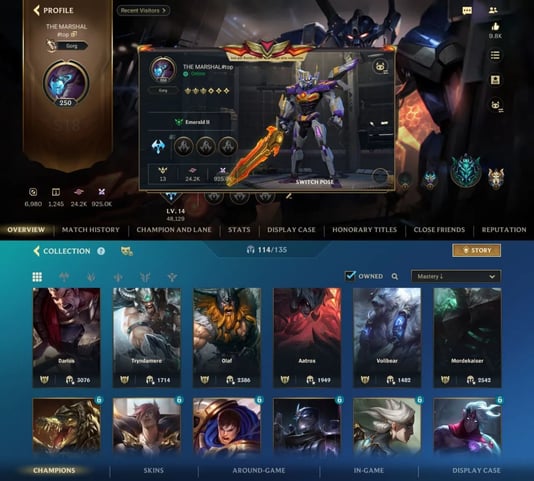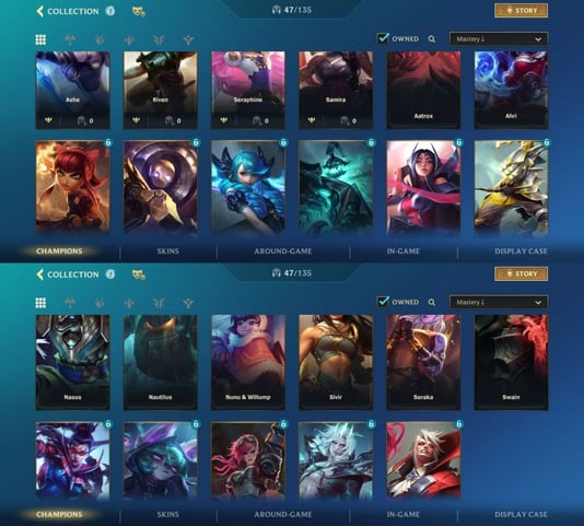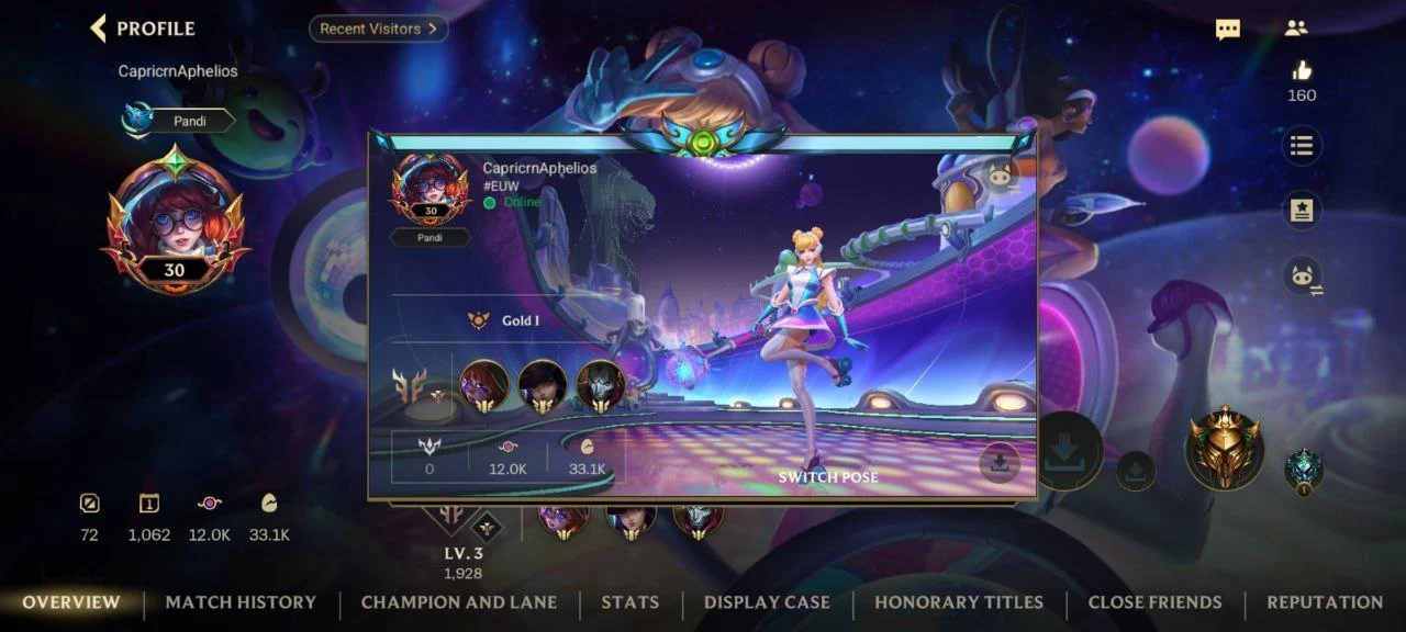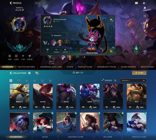 iOS/Android 🌐 EU 🎖️ Level 30 💯 Champions 50 🧨 Skins 76 ⚔️ Legendary 9 👑 Code1312