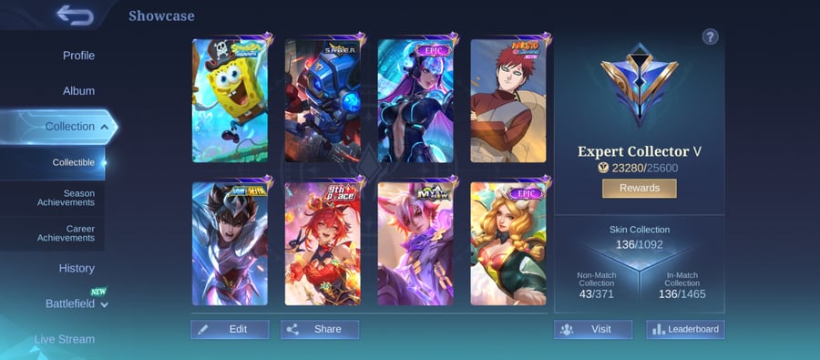 As contas disponíveis de Mobile Legends abrangem as seguintes categorias: