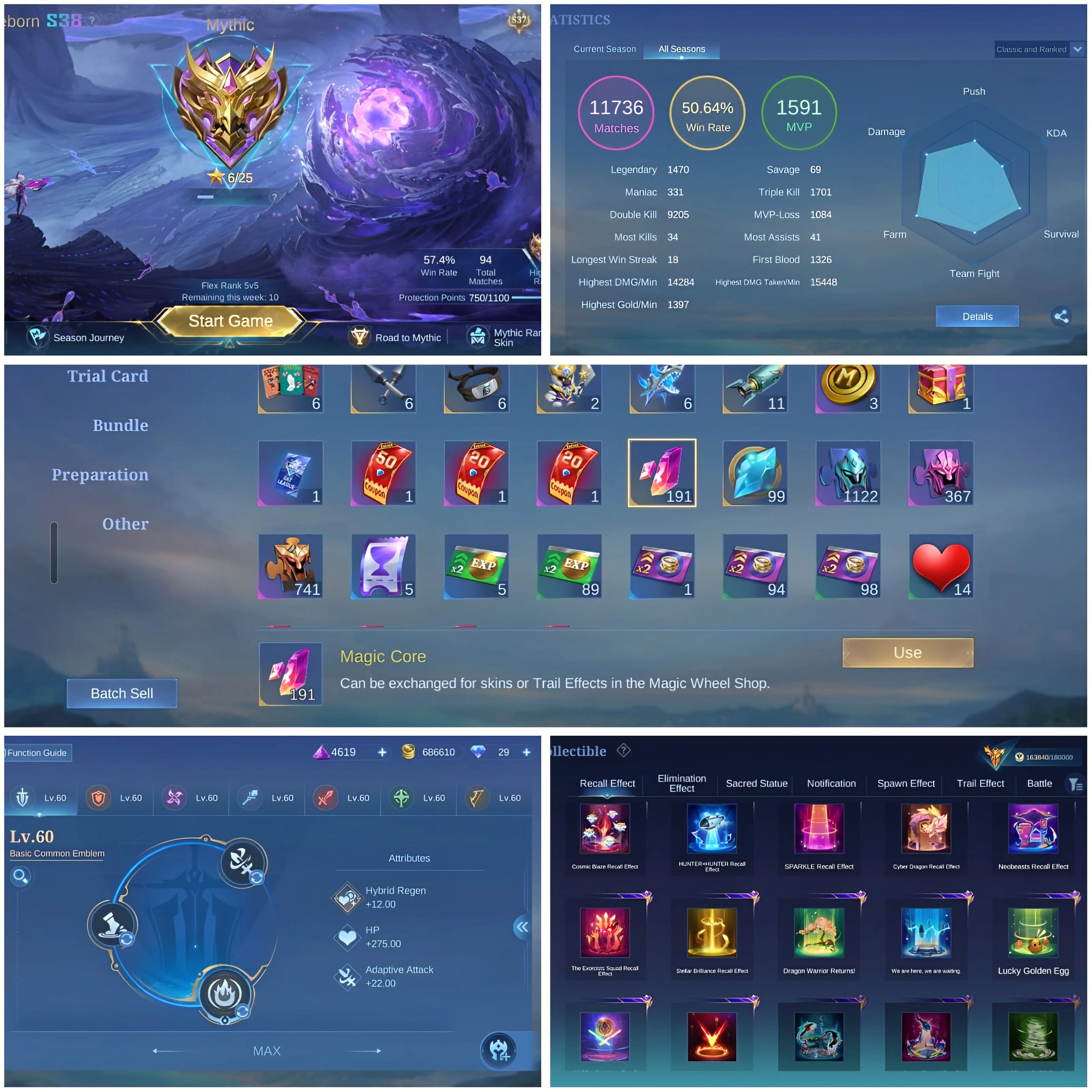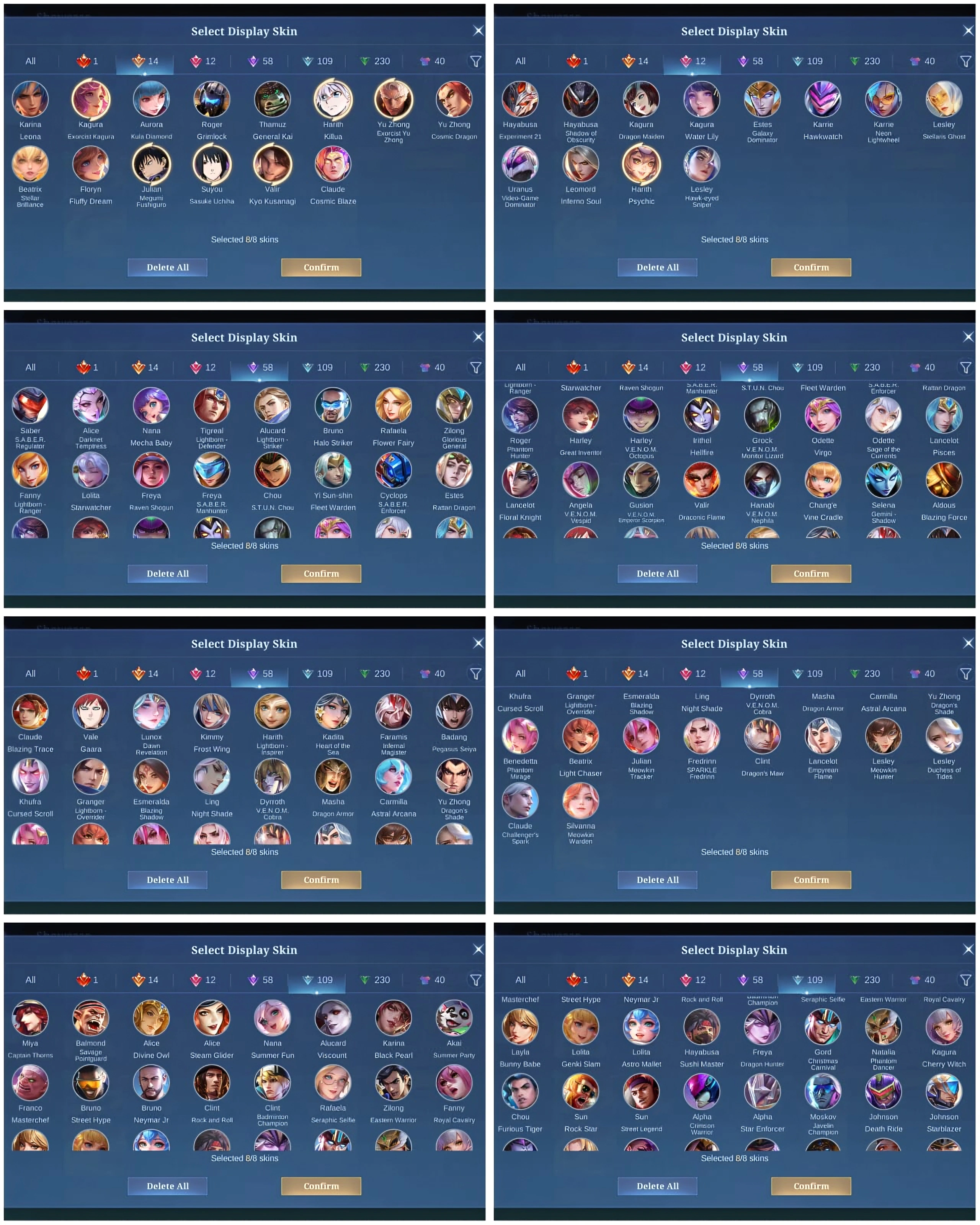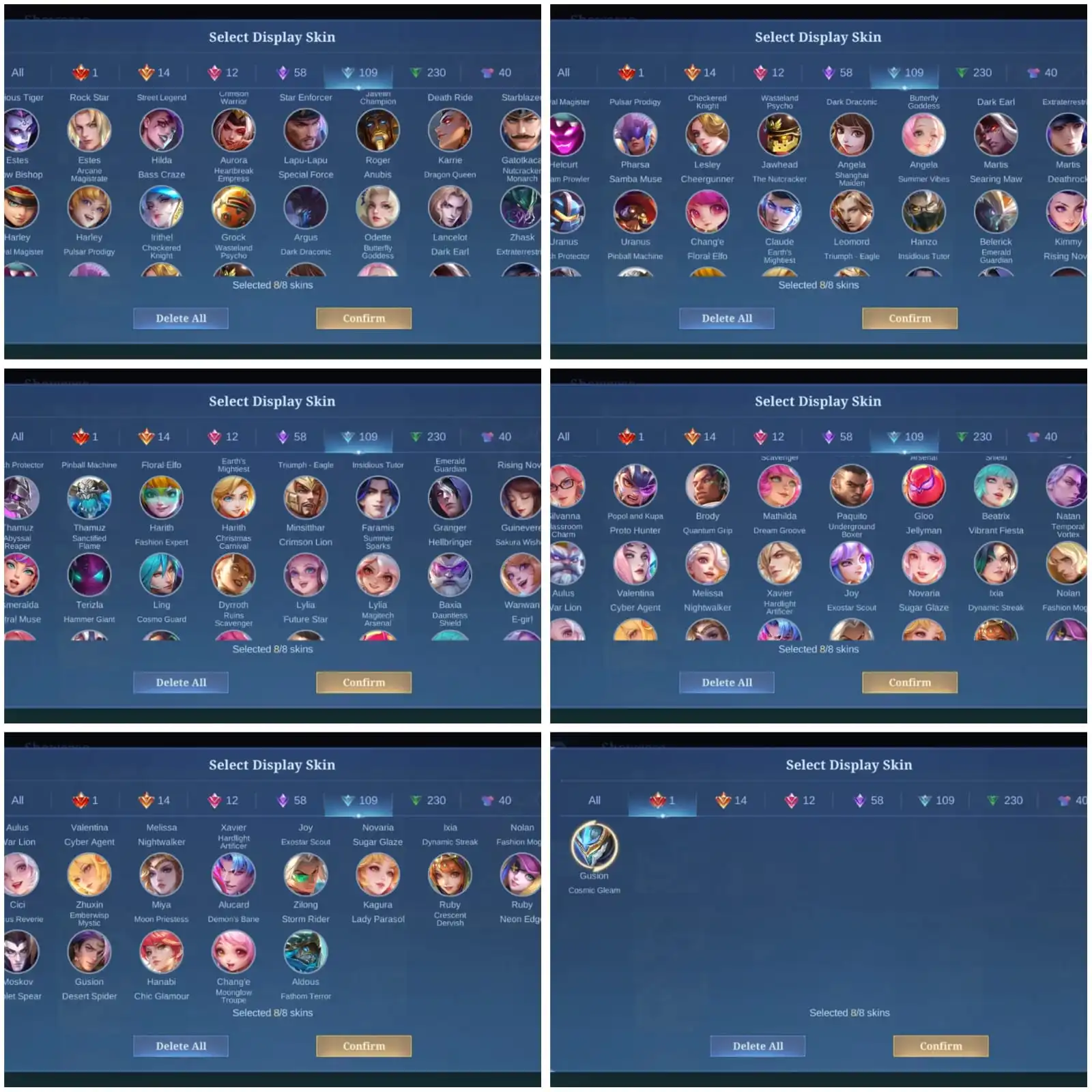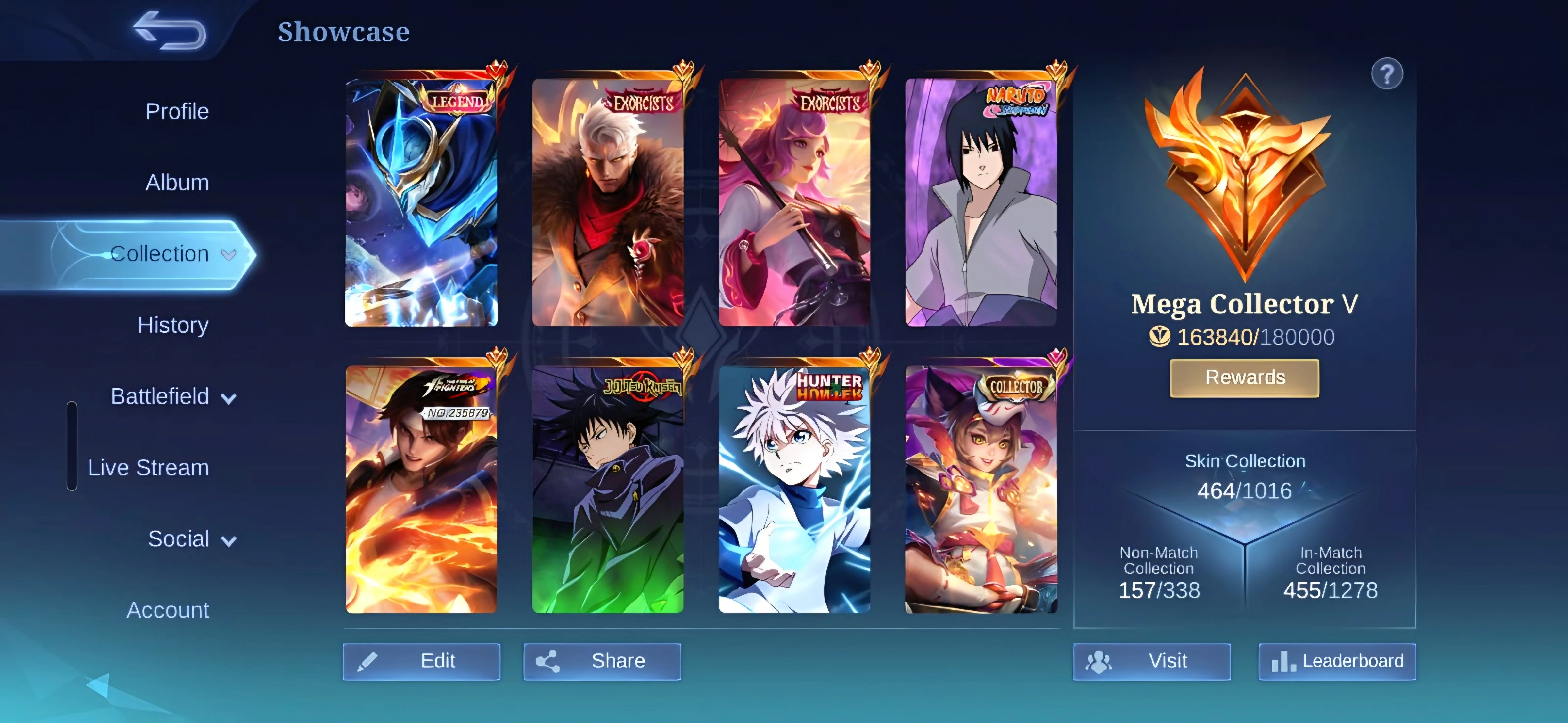 [IOS/ANDROID] CEL LVL 126 | 130 HEROES | 464 SKINS | MEGA 5 | GUSION LEGEND & 191 CORES ⸱ SASUKE ⸱ HxH ⸱ 2 EXORCIST ⸱ JJK JULIAN ⸱ 3 KOF ⸱ HARITH COLLECTOR