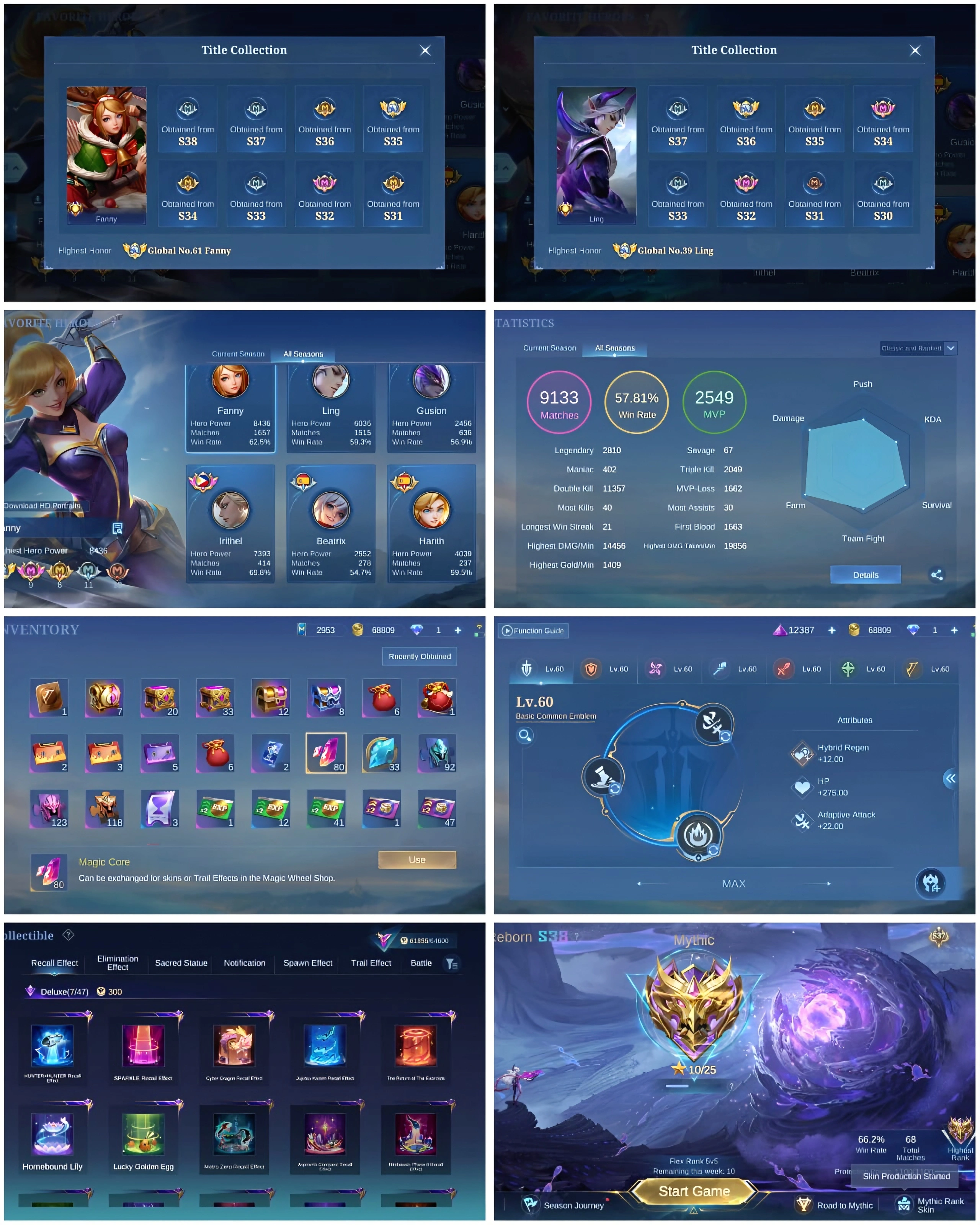 [IOS/ANDROID] CEL LVL 86 | 110 HEROES | 232 SKINS | GLOBAL TITLES | SASUKE ⸱ GUSION COLLECTOR ⸱ BADANG GOLDEN ⸱ FANNY LING GLOBAL TITLES