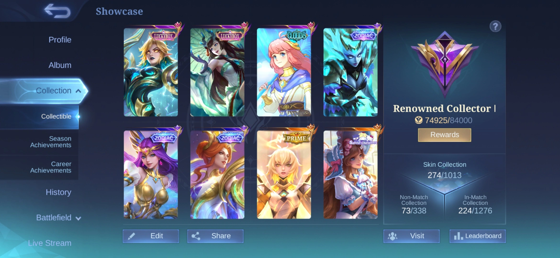 MB823|LV69|HERO 109|SKIN 274|RENOWNED COLLECTOR 1|BEATRIX PRIME|KARINA KOF|FLORYN SANRIO|KAGURA CLOUDS|LESLEY ANNUAL|LUO YI CREATE|SELENA, ODETTE, AURORA ZODIAC|13 EPIC|BADANG SEIYA|VALE GAARA