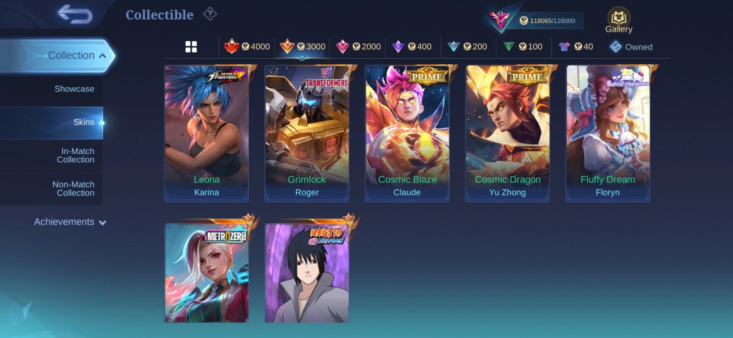 MB828|LV104|HERO 129|SKIN 366|EXALTED COLLECTOR 3|FREE SKIN LEGEND|KARINA KOF|ROGER TF|CLAUDE, YU ZHONG PRIME|SASUKE SUYOU|LXIA METROZERO|FLORYN SANRIO|YI SUN SHIN, BADANG COLLECTOR|XAVIER CLOUDS|KAGURA CLOUDS|4 LUCKYBOX|4 ANNUAL|15 EPIC