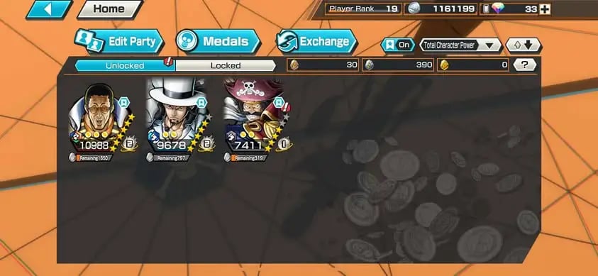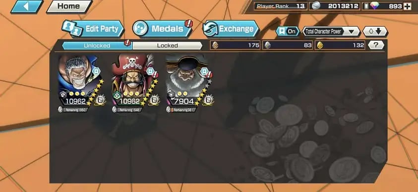 [3372][IOS+ANDROID] 3 EX / Akainu + Roger + Yamato, Support 124%, Good Medal