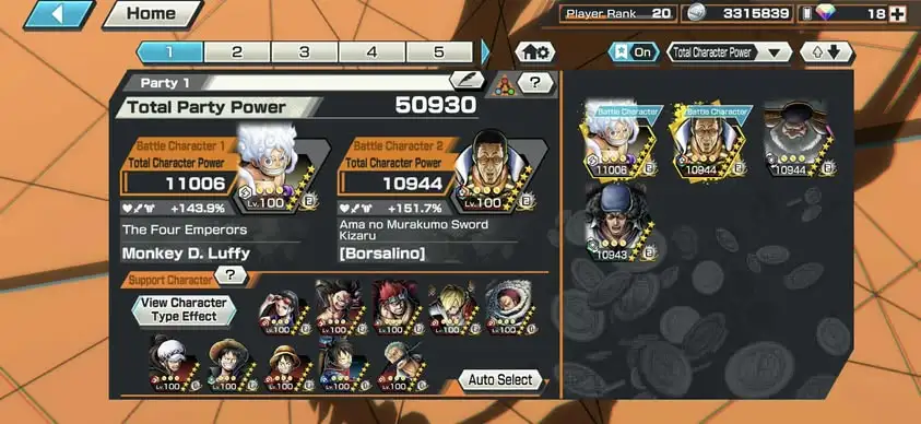 [3388][IOS+ANDROID] 4 EX META MAX / Luffy Light + Saturn + Kuzan + Kizaru , Support 151% , Good Medal