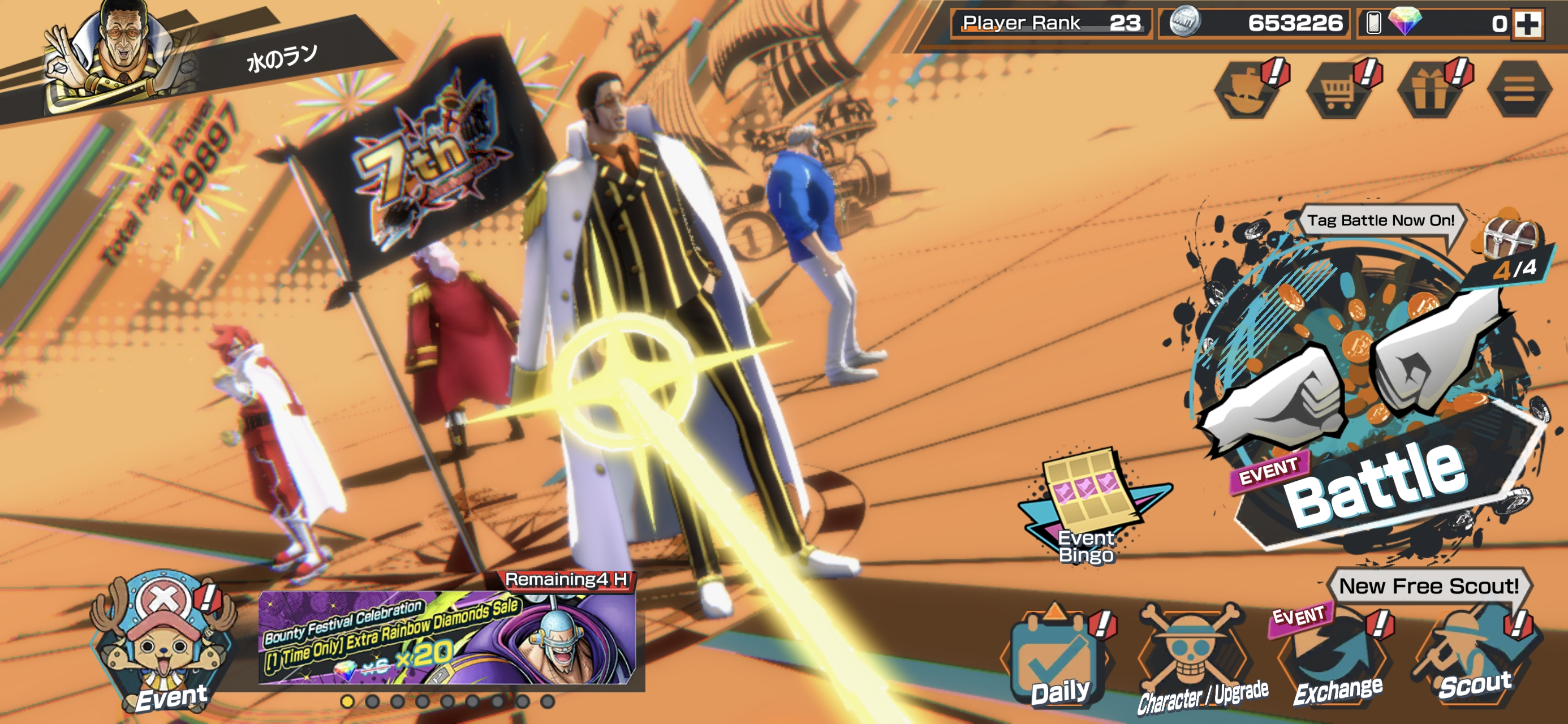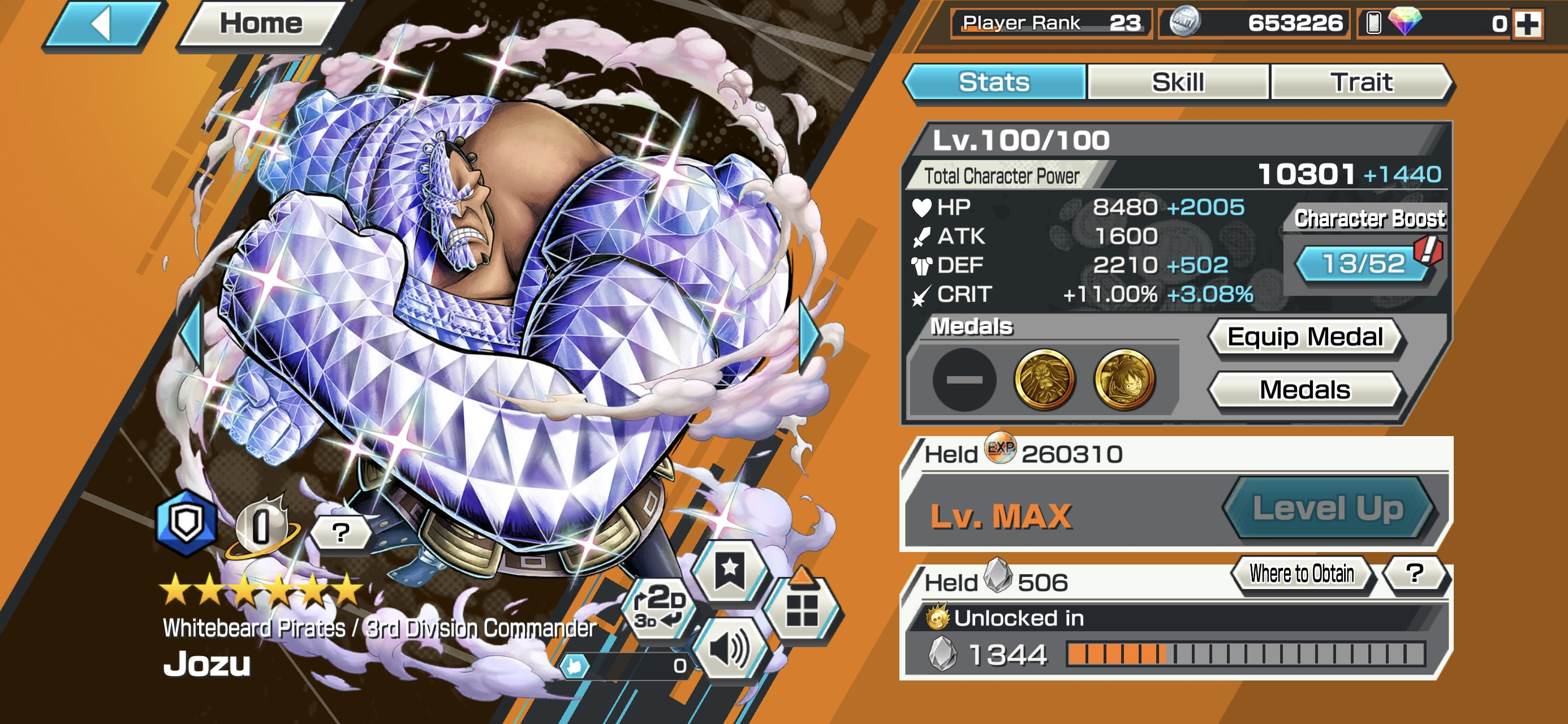 4 Ex Meta 3 Max ⸱ Roger Max Power 11K ⸱ Garp Max ⸱ Rob Lucci Max ⸱ Kizaru ⸱ Jozu Max ⸱ Support 126 ⸱ Good Medal ⸱ Gems ⸱ Many Medal Material ⸱ B408