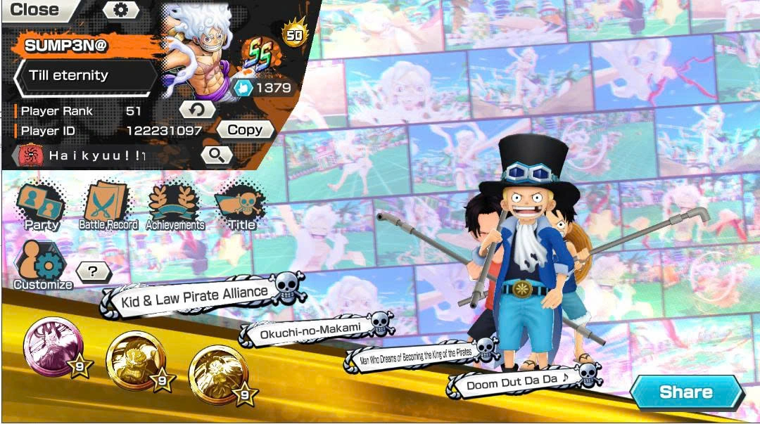 BR676-IOS+Android-Hyber Boost 50+11 Ex(Kid Law Full Boost+Yamato v2 Full Boost+Gear 5 v2+Gear 5 v1+Shank v4+Kuzan+Sabo+White Beard+Luffy+Yamato v1+Black Beard v1)+Vip Medal+Support 172%+Many BF Max+Strong Account