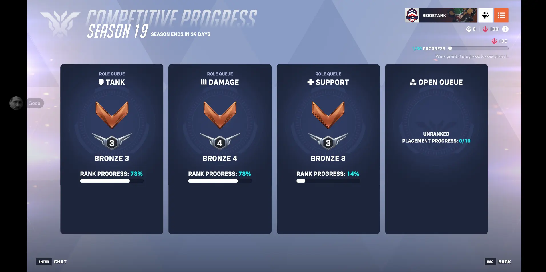 SE19🚀Triple Bronze All roles | bronze Tank 3 ⸱ bronze support3 ⸱ bronze damage 4 ( dps ) | Free Name change