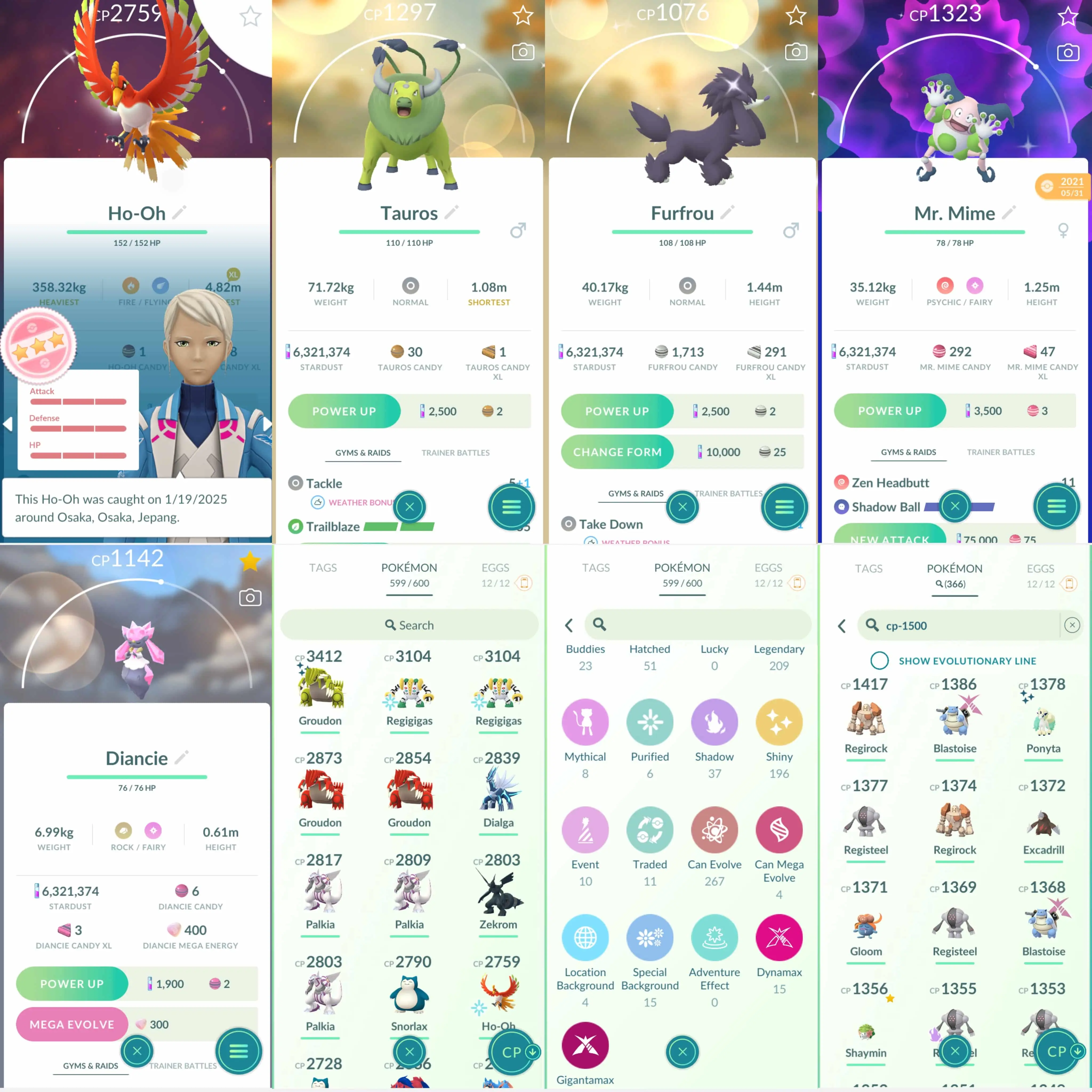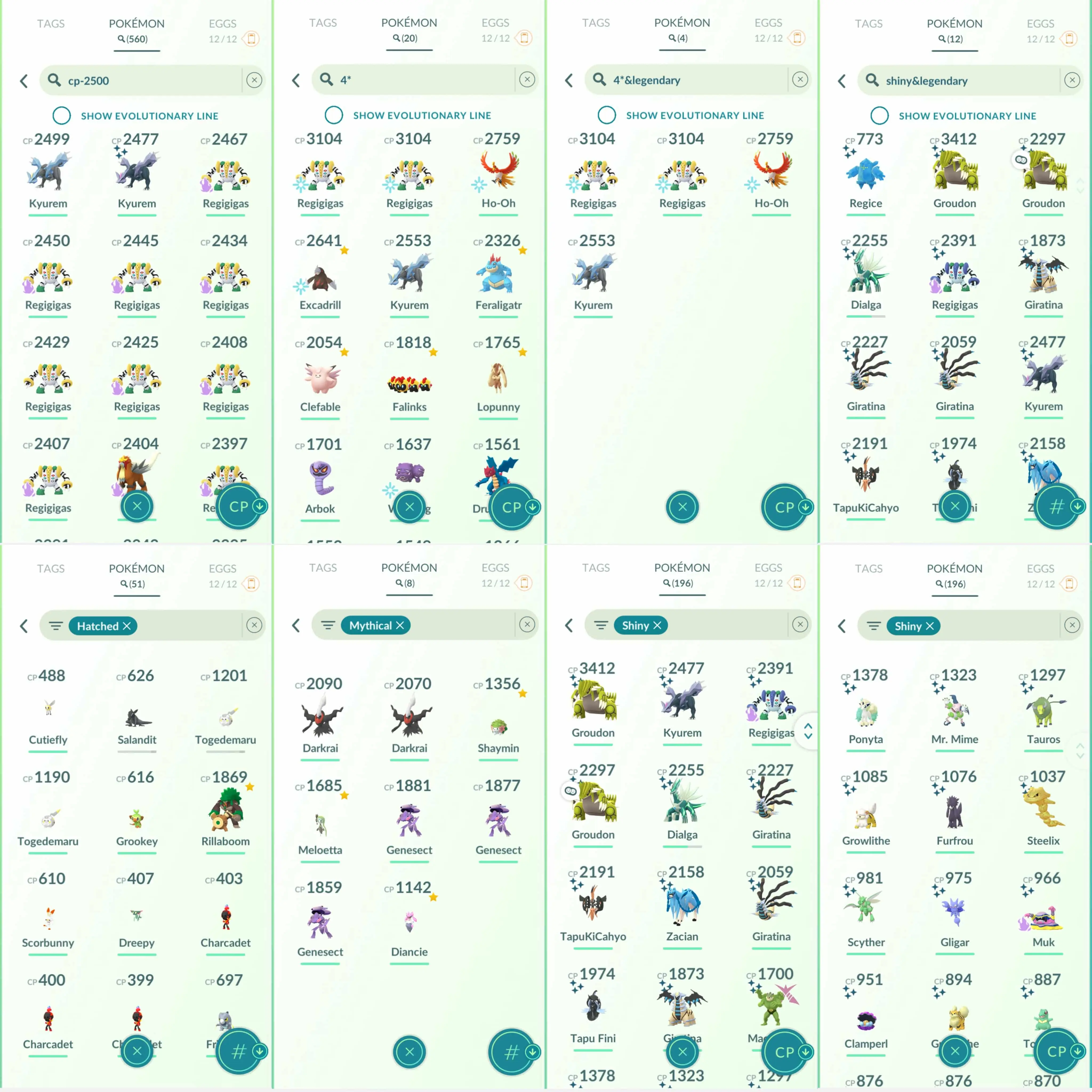Shiny: Zacian, Shadow Regigigas, Regice, Groudon, Dialga, Giratina, altered, Giratina Origin, Kyurem, Tapu Koko, Tapu Fini, Tauros, Hisui Growlithe, shadow Muk
