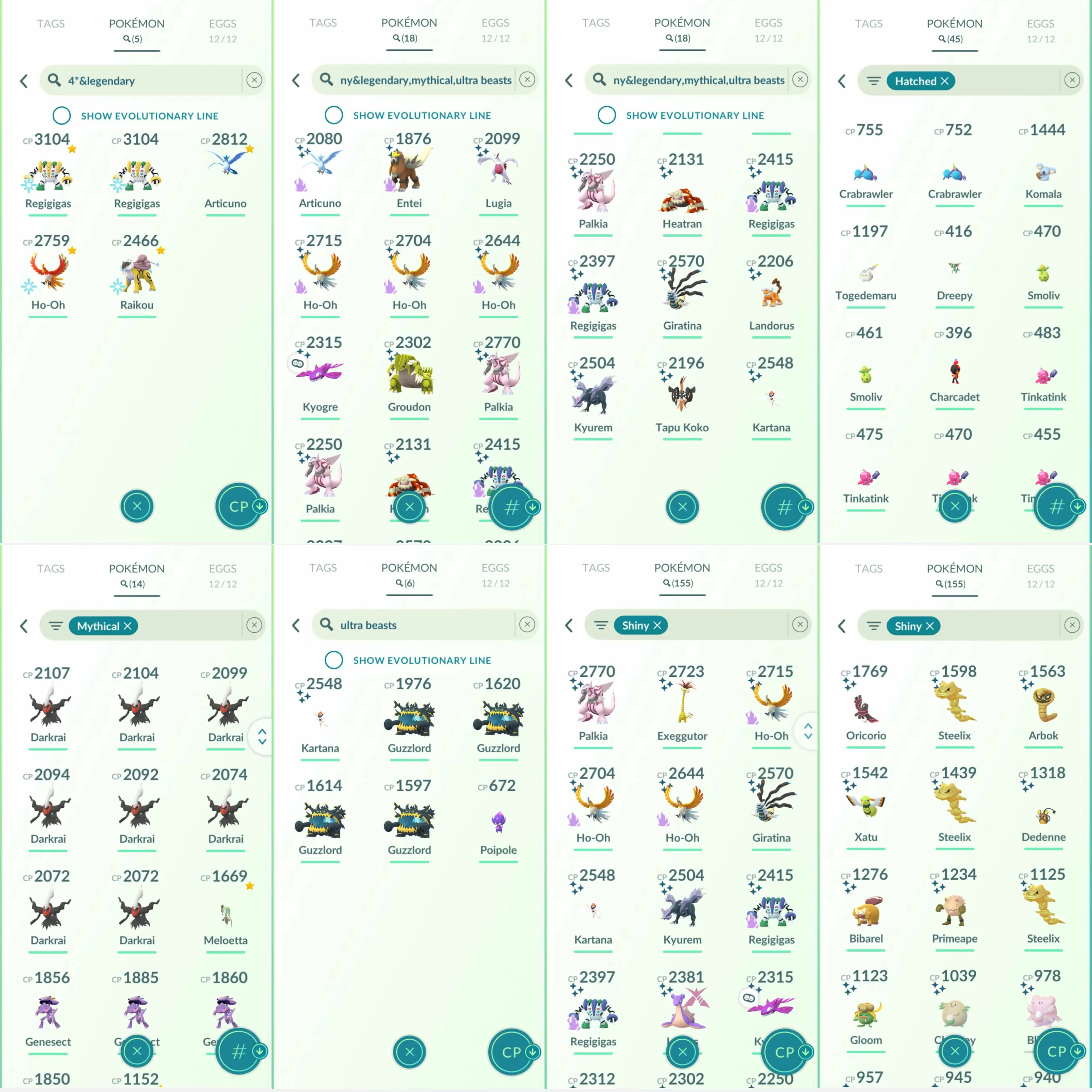 Shiny: kartana, kyurem, shadow regigigas, giratina, palkia, shadow articuno, shadow entei, lugia, shadow ho-oh, kyogre
