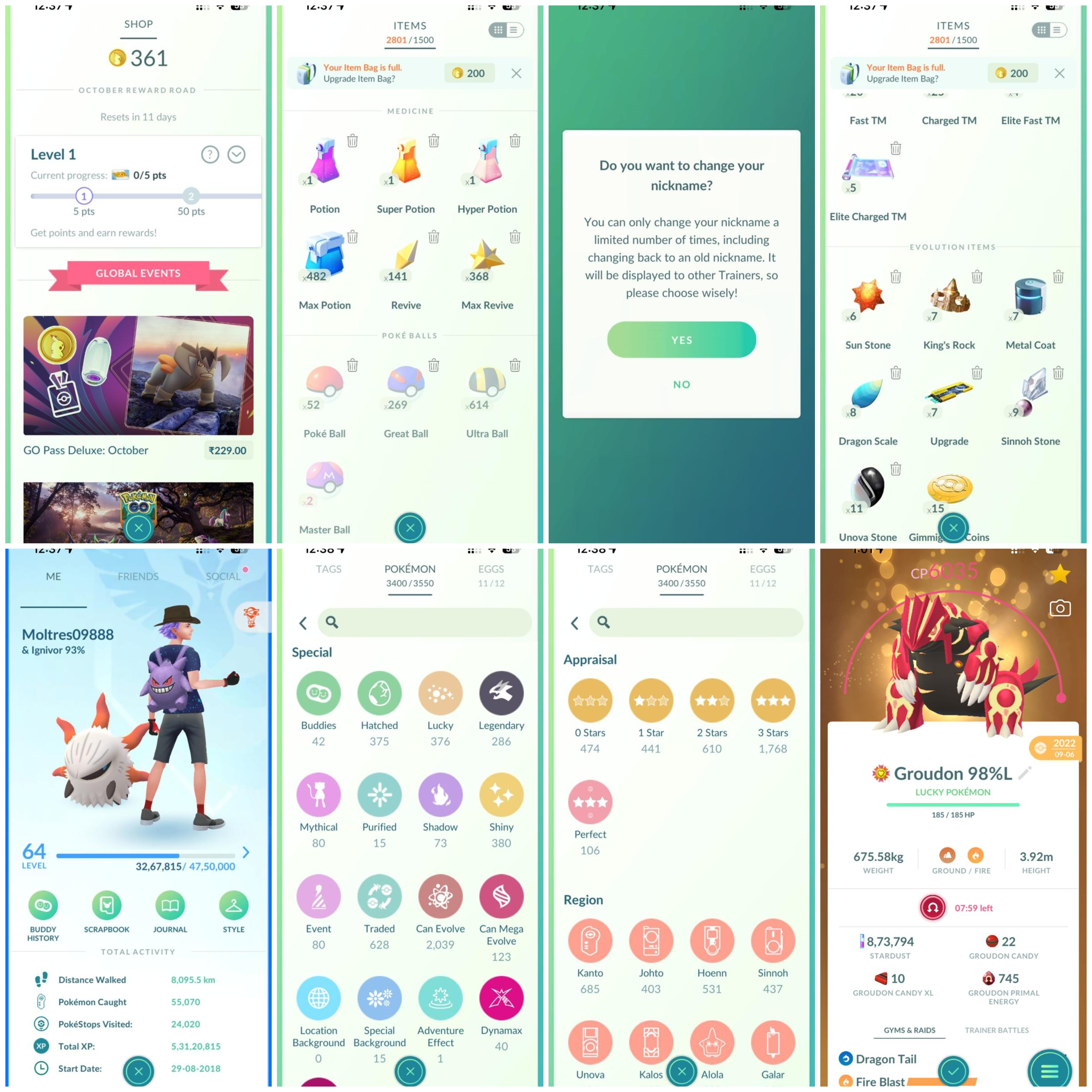 EXCLUSIVE DEAL🔥LVL 64(2018)👺PRIMAL GROUDON✨366 LEG,MYTH🤯380 SHINY😎 12 MEWTWO💀18 SHINY LEGENDARY,MYTH ⸱ RAYQUAZA, CELEBI, LATIAS, LUGIA, GIRATINA & MORE🍁40 DMAX🥵OP STORAGE🍁106 PERFECT MONS♾️80 EVE MONS 🍁OP ACC🔥DESCRIPTION FOR MORE DETAILS👇🏻
