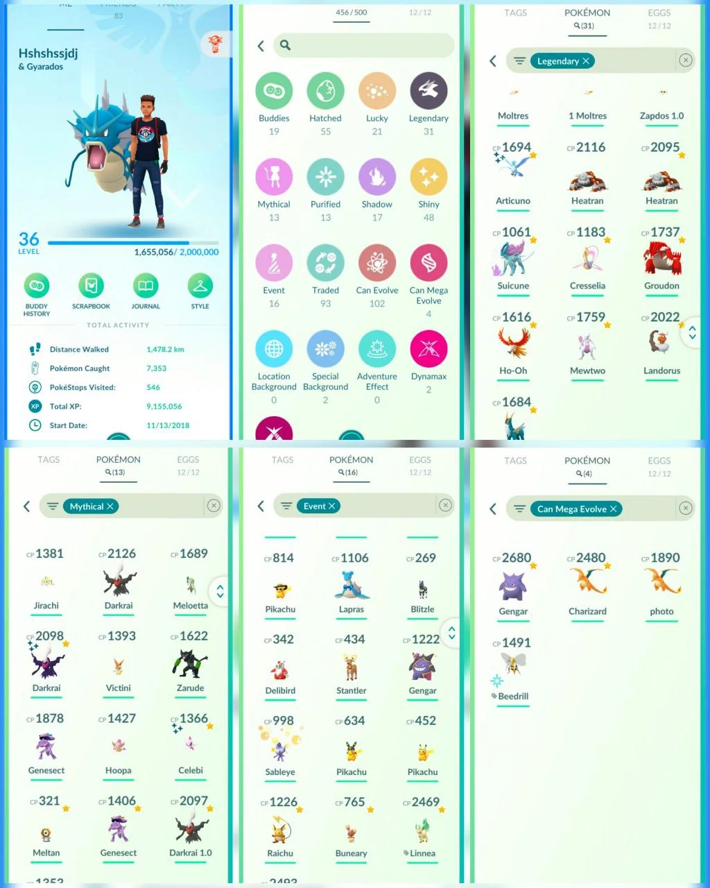 VC5 | Level36 | 31 Legendary | 48 Shiny | Shiny Articuno | Mewtwo | Groudon | Shiny Celebi | Shiny Darkrai | Bentee Gengar | Mega Charizard | Mega Gengar | 2018 Account