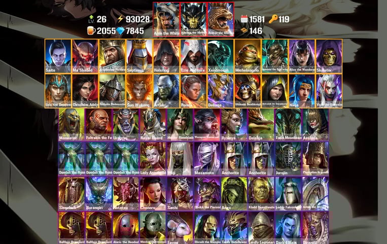 Fragmentos Sagrados — O nível mais alto, oferecendo uma taxa base de pull de Lendários de 12% e acesso aos campeões mais poderosos de todas as facções.