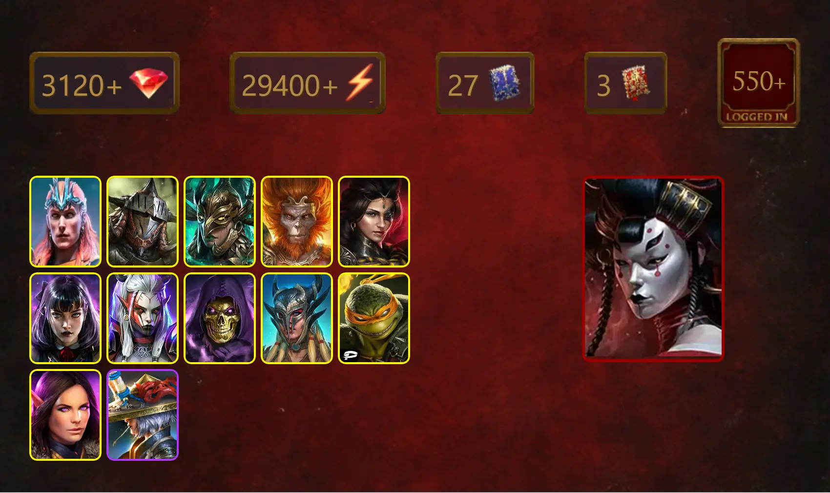 [STARTER]Lady Mikage+Zavia+Loki+Rathalos+Leminisi the Gold-Wing+Wukong+Adelyn+Alice+Visix+Skeletor+Scyl+Michelangelo+26Epics