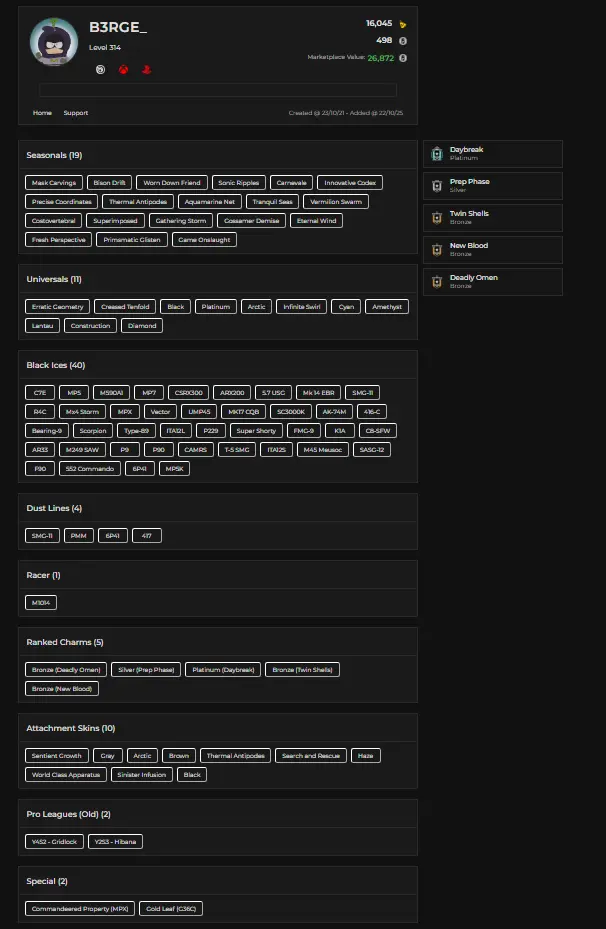 🎮 FULL CROSS-PLATFORM | LEVEL 314 | 16K RENOWN | 40 BLACK ICE | 32 LEGENDARY | 92 EPIC | ULTIMATE COLLECTOR ACCOUNT