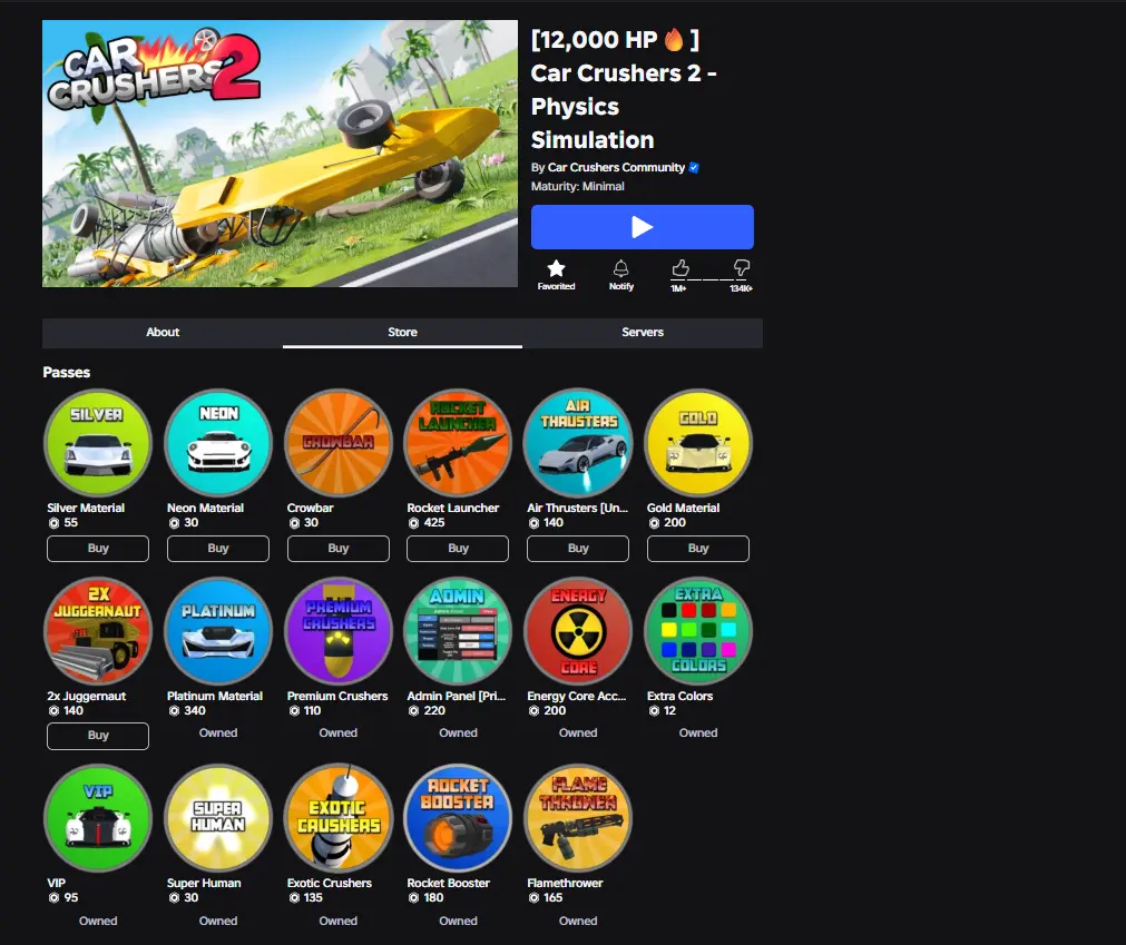 ❤️ Car Crushers 2 ⸱ Physics Simulation ❤️ Platinum Material ❤️ Admin Panel [Private Servers] ❤️ Energy Core Access ❤️ Flamethrower ❤️ Rocket Booster ❤️ Exotic Crushers ❤️ Super Human ❤️ Premium Crushers ❤️ Extra Colors ❤️