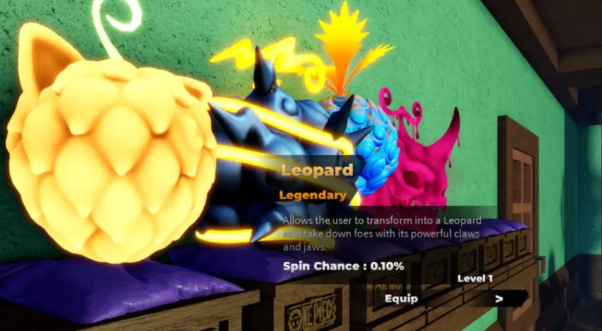 As rotações de frutas custam 50 gemas cada. Os jogadores começam com 500 gemas, permitindo dez rotações iniciais. Frutas míticas como Leopardo V2, Dragão V2 e Nika têm taxas de queda baixas, tornando-as extremamente raras. As versões Despertadas V2 das frutas oferecem habilidades aprimoradas e ataques básicos personalizados. Jogadores premium recebem um aumento de sorte de 20% nas rotações de frutas.