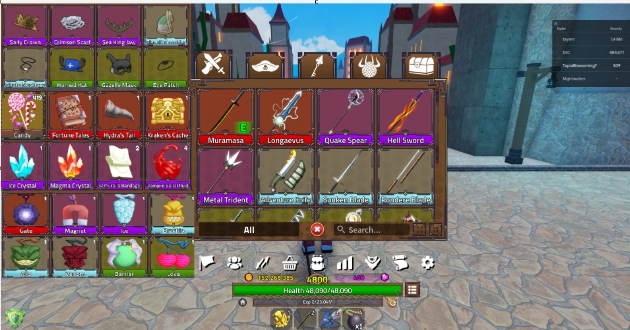 King Legacy ⸱ 4800 LV ⸱ Cyborg ⸱ Gate Inventory ⸱ Muramasa ⸱ Longaevus ⸱ 152m Peli ⸱ 450 Gems ⸱ Unlinked