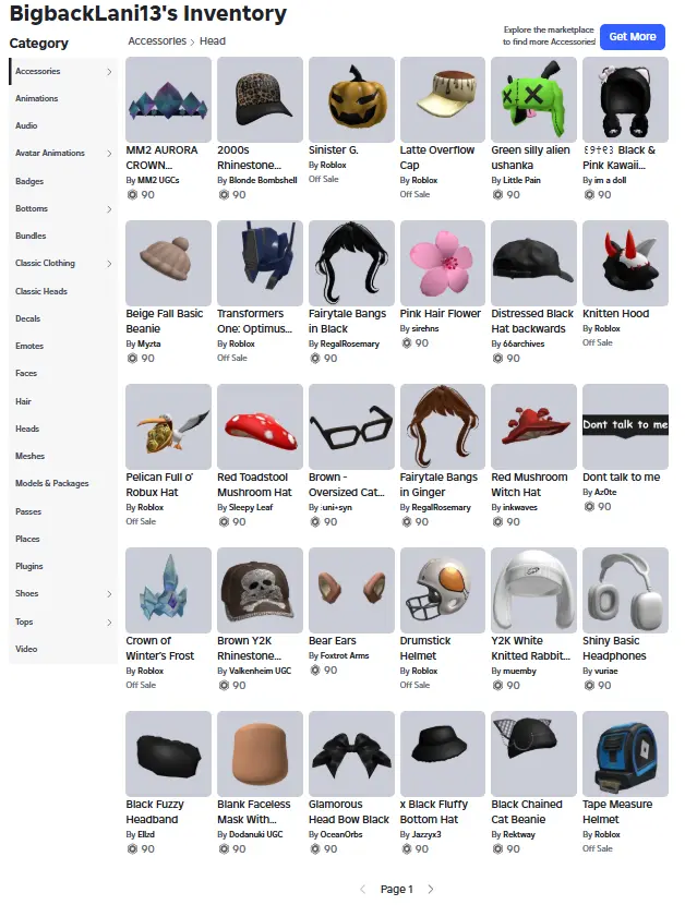 RBL2300 MM2 Aurora Crown, Sinister G, Latte Overflow Cap, Pink Hair Flower, Bear Ears, Glamorous Head Bow, Cat Beanie, 5K+ Facial Inventory, (G)