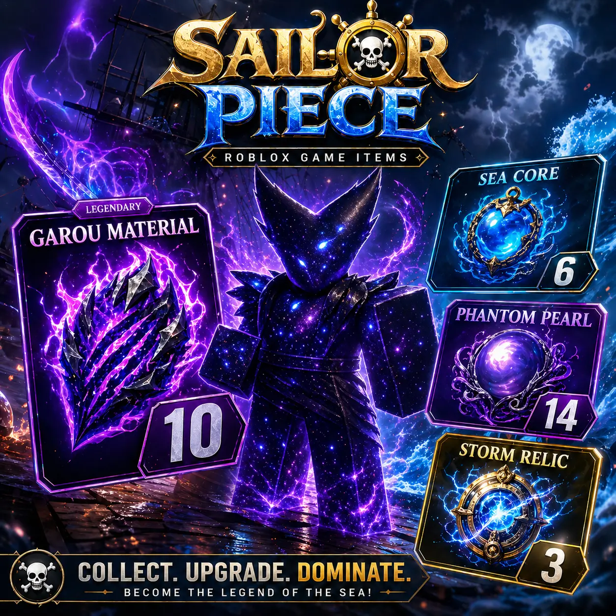 Nossos itens Sailor Piece à venda cobrem todas as categorias principais de progressão no jogo. Aqui está o que está disponível: