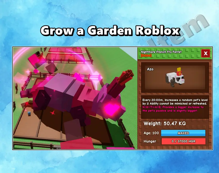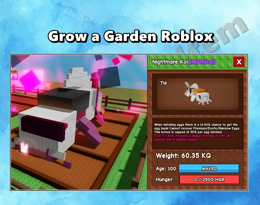 Nightmare Koi Age 100 Weight 60KG ++ Ability 14% Grow a Garden