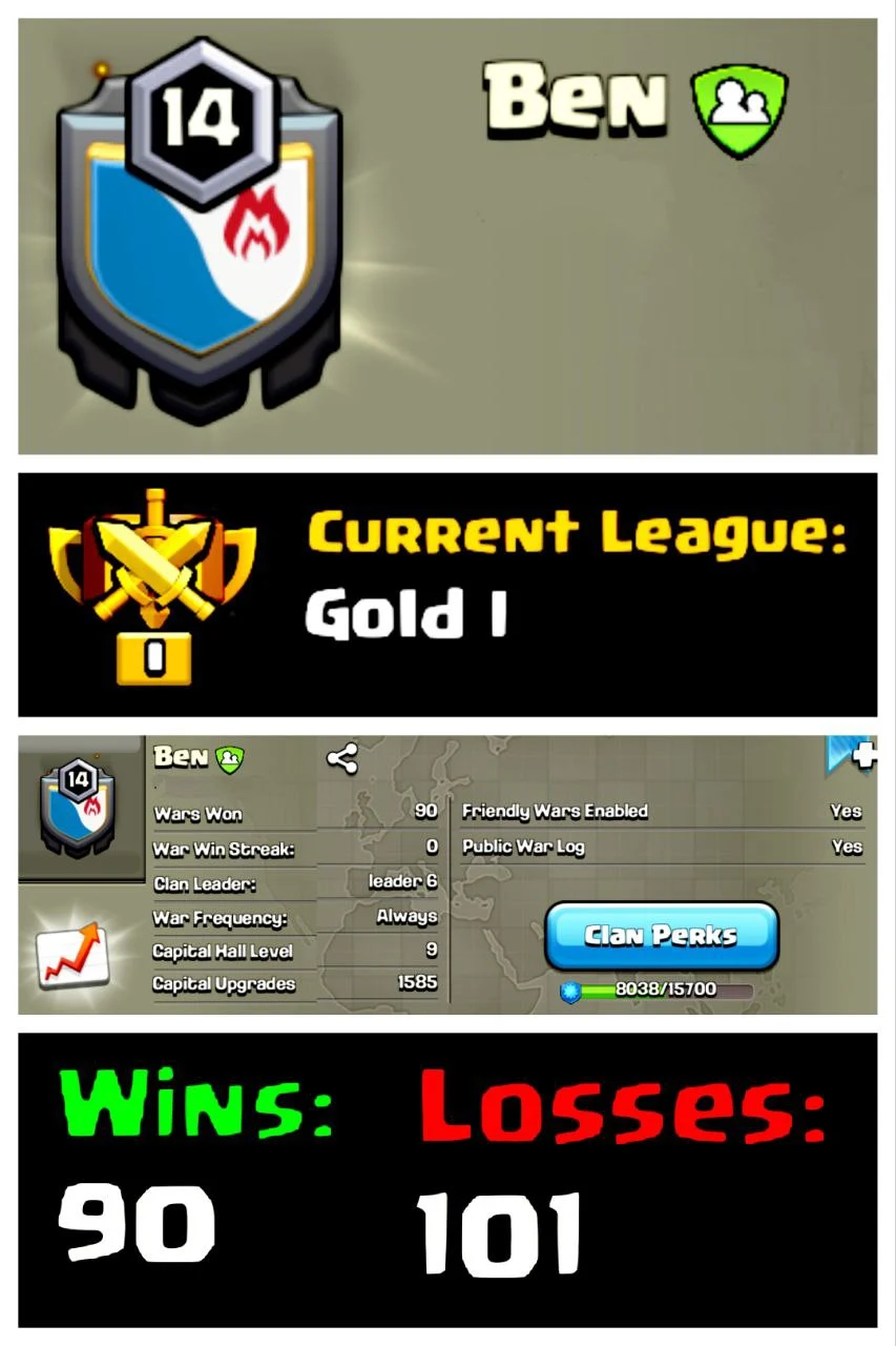 ⚡ OP LVL 14 ENGLISH CLAN 🌌 BEN 🏆 GOLD I 🏯 CLAN CAPITAL 9 🔥 90W/101L 🚀 INSTANT DELIVERY 🛒 BUY NOW #LB
