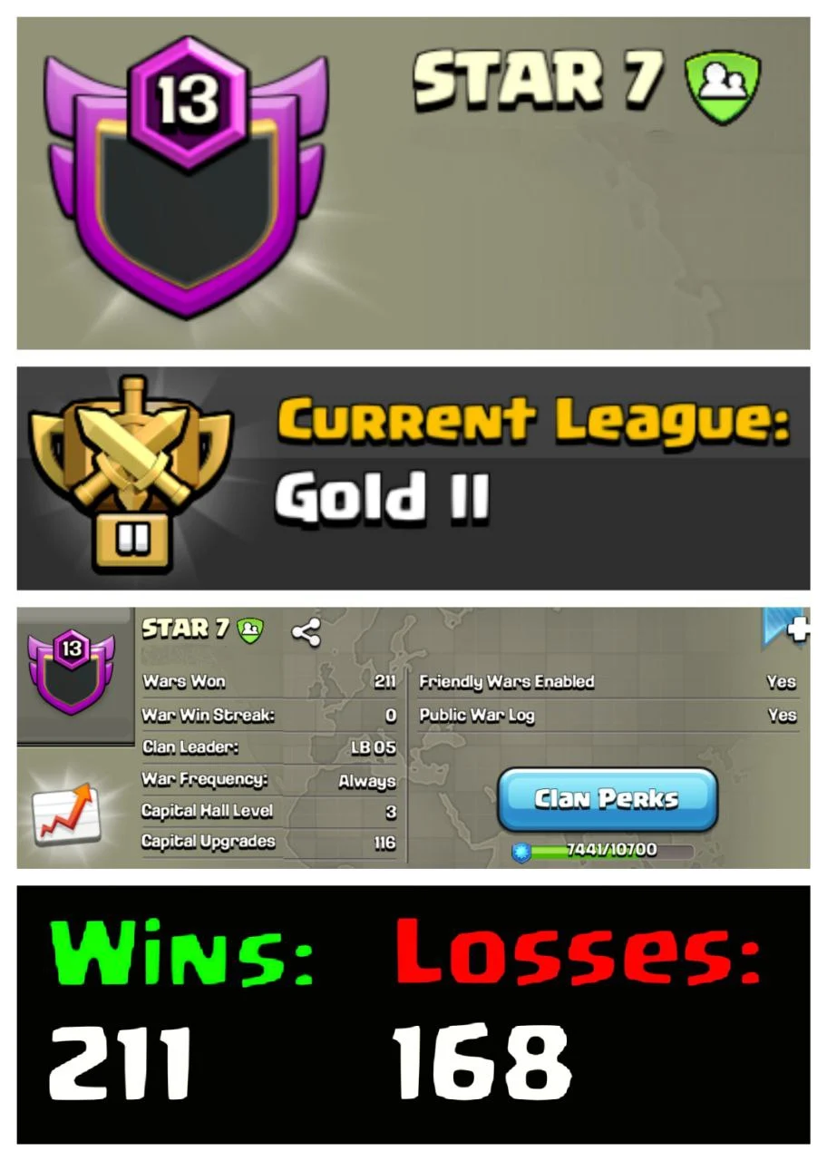 🌟 OP LVL 13 ENGLISH CLAN 🌌 STAR 7 ⚔️ GOLD II 🏯 CLAN CAPITAL 3 ⚡ 211W/168L 🚀 INSTANT DELIVERY 🛒 BUY NOW #LB