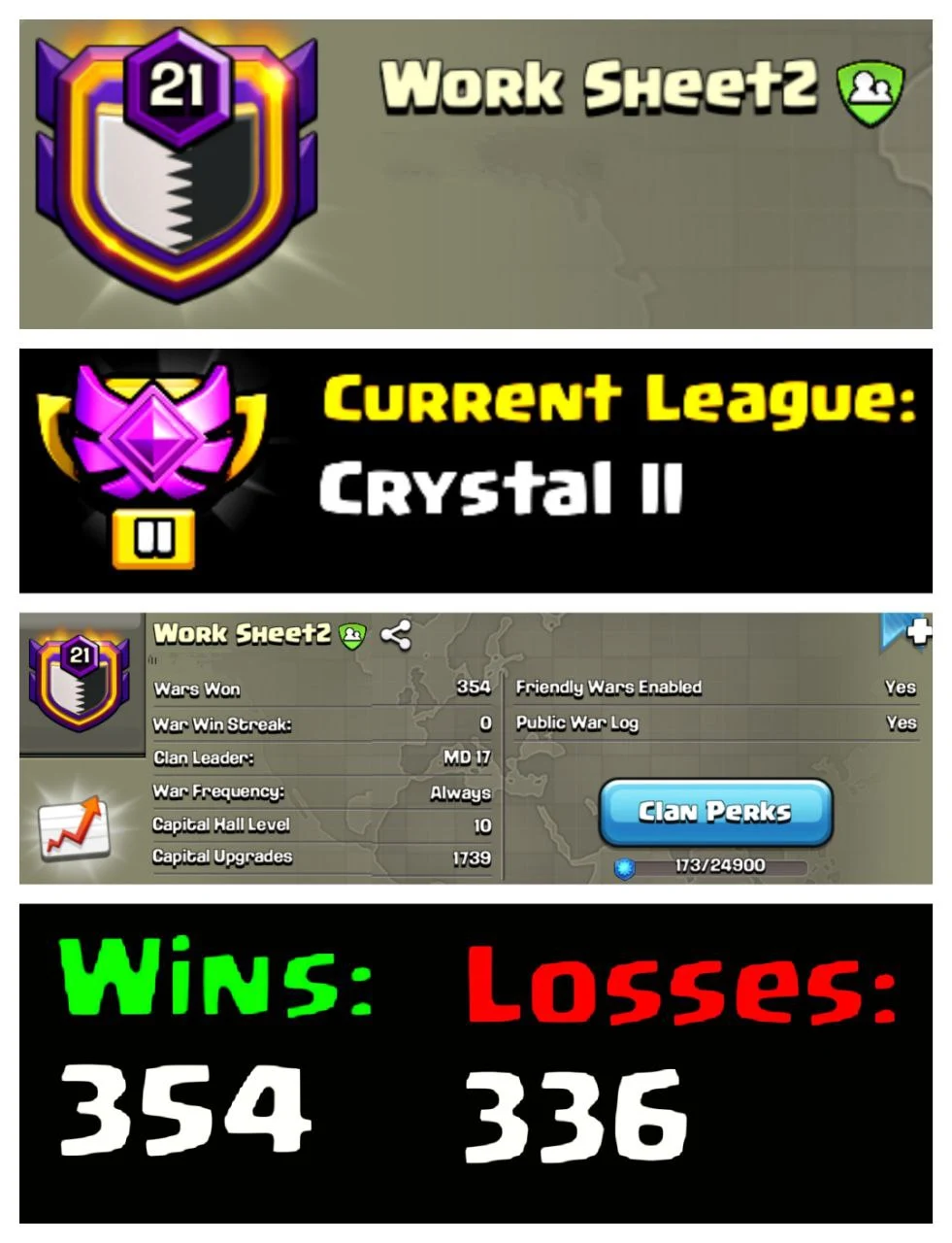 📊 OP LVL 21 ENGLISH CLAN 🧩 WORK SHEET 2 ⚔️ CRYSTAL II 🏯 CLAN CAPITAL 10 🔥 354W/336L 🚀 INSTANT DELIVERY 🛒 BUY NOW #LB