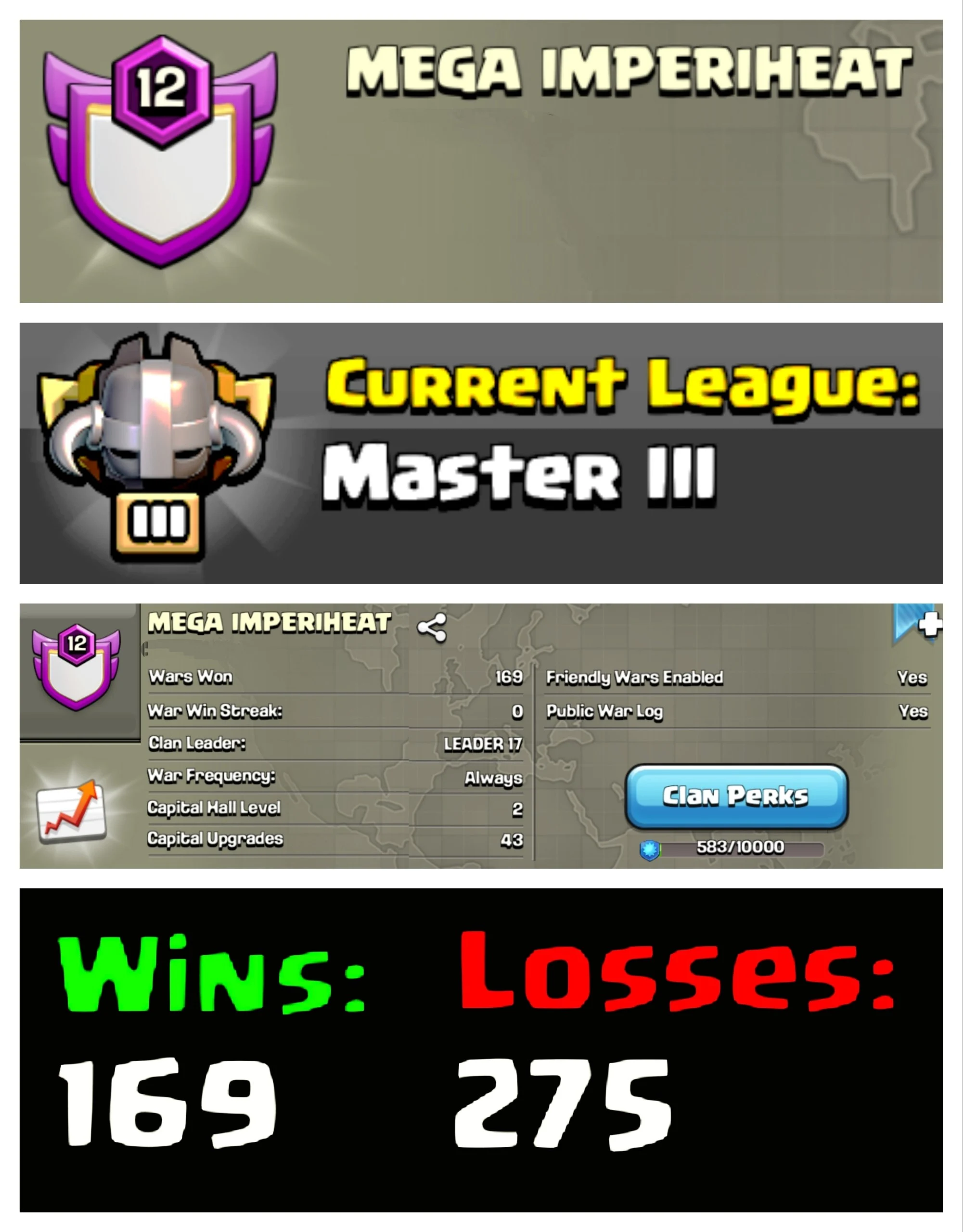 🌋 OP LVL 12 ENGLISH CLAN ⚙️ MEGA IMPERIHEAT 💎 MASTER III 🏯 CC 2 🔥 169W/275L 🚀 INSTANT DELIVERY 🛒 BUY NOW #LB