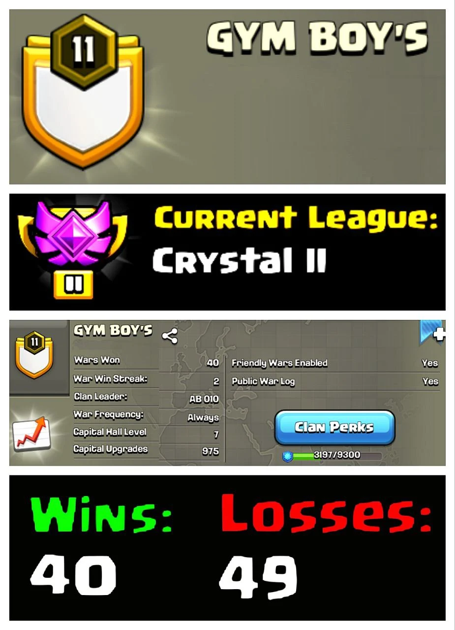 🏋️ OP LVL 11 ENGLISH CLAN ⚙️ GYM BOYS 💎 CRYSTAL II 🏯 CLAN CAPITAL 7 💮 40W/49L 🚀 INSTANT DELIVERY 🛒 BUY NOW #LB