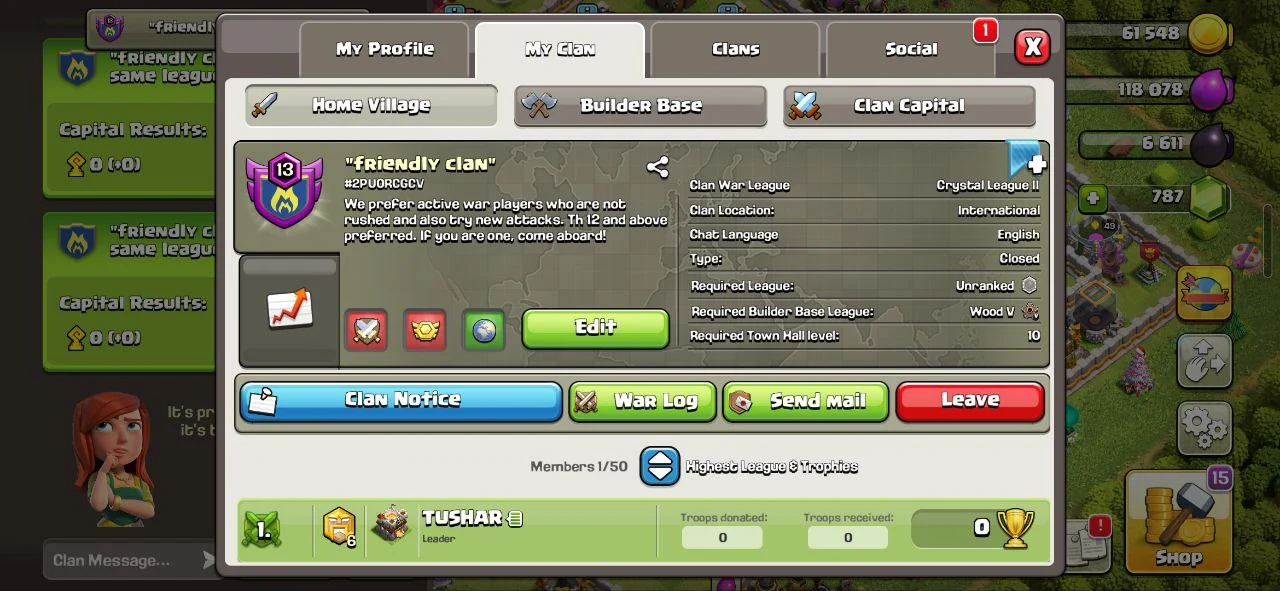 Level 17 ✨ Capital Hall 9 ✨Natural Traffic 🚦 English Name Donation Clan 🏠 CWL Master 3 🏆 Positive Warlog ⚠️ FAST DELIVERY 🚚