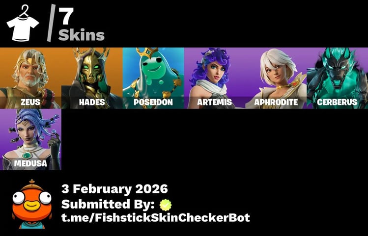 【PC/PSN/XBOX】6 Skins | Zeus | Hades | Poseidon | Artemis | Aphrodite | Cerberus | Medusa | Snakebite Keyring | Cozy Conch | Huntress Lyre | Hadean Gate | 850 VB | FS52