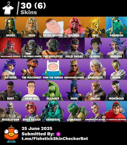 【PC/PSN/XBOX】30 Skins | Hades | Zeus | Peter Griffin | Valeria | Oro | Poseidon | Wastelander Magneto | T-60 Power Armor | The Employee | Solid Snake | 150 VB | FS10