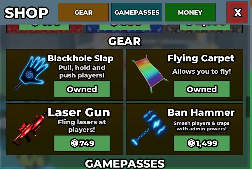 Rebirths 11, Secrets Brainrots : 17, Admin Commands : Owned, Flying Carpet : Owned Blackhole Slap : Owned