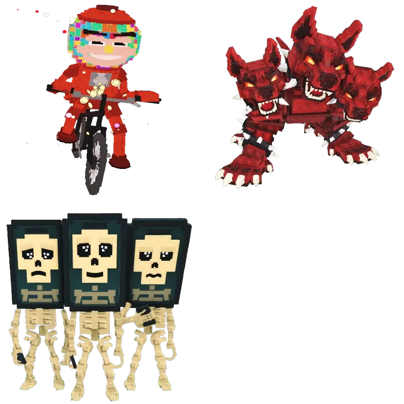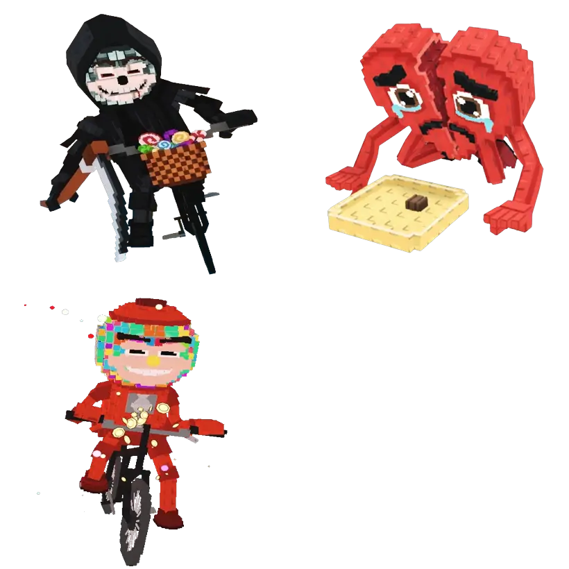 Existem várias reskins, incluindo Mieteteira Bicicleteira (versão Halloween), Chicleteira Noelteira (versão Natal, andando em um trenó) e Chicleteira Cupideira (versão Dia dos Namorados). Também há uma contraparte feminina chamada Chicleteirina Bicicleteirina.