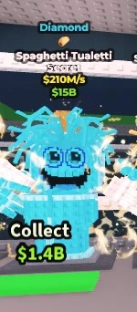 Spaghetti Tualetti é um Brainrot de raridade Secreta em Steal a Brainrot, lançado em 30 de agosto de 2025. Aparece como um vaso sanitário humanóide com fios de espaguete no lugar do cabelo, molho de tomate preenchendo a bacia, e duas mãos flutuantes usando luvas. Gera $60M por segundo e custa $15B para ser colocado. Também faz parte da La Secret Combinasion, tornando-o um dos Brainrots Secret Lucky Block mais reconhecíveis no jogo.