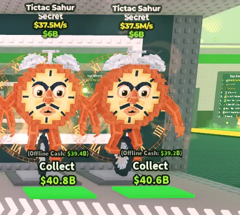 Tictac Sahur é um Brainrot de raridade Secreta em Steal a Brainrot, lançado durante a atualização do Evento México. Aparece como um relógio marrom andando de monociclo, com números romanos aparecendo pelo corpo quando se move. Custa $6B e gera $37,5M por segundo, tornando-se o Brainrot de segunda maior renda na família Sahur. O período de retorno é cerca de 160 segundos, tornando-o um dos investimentos mais eficientes em sua faixa de preço.