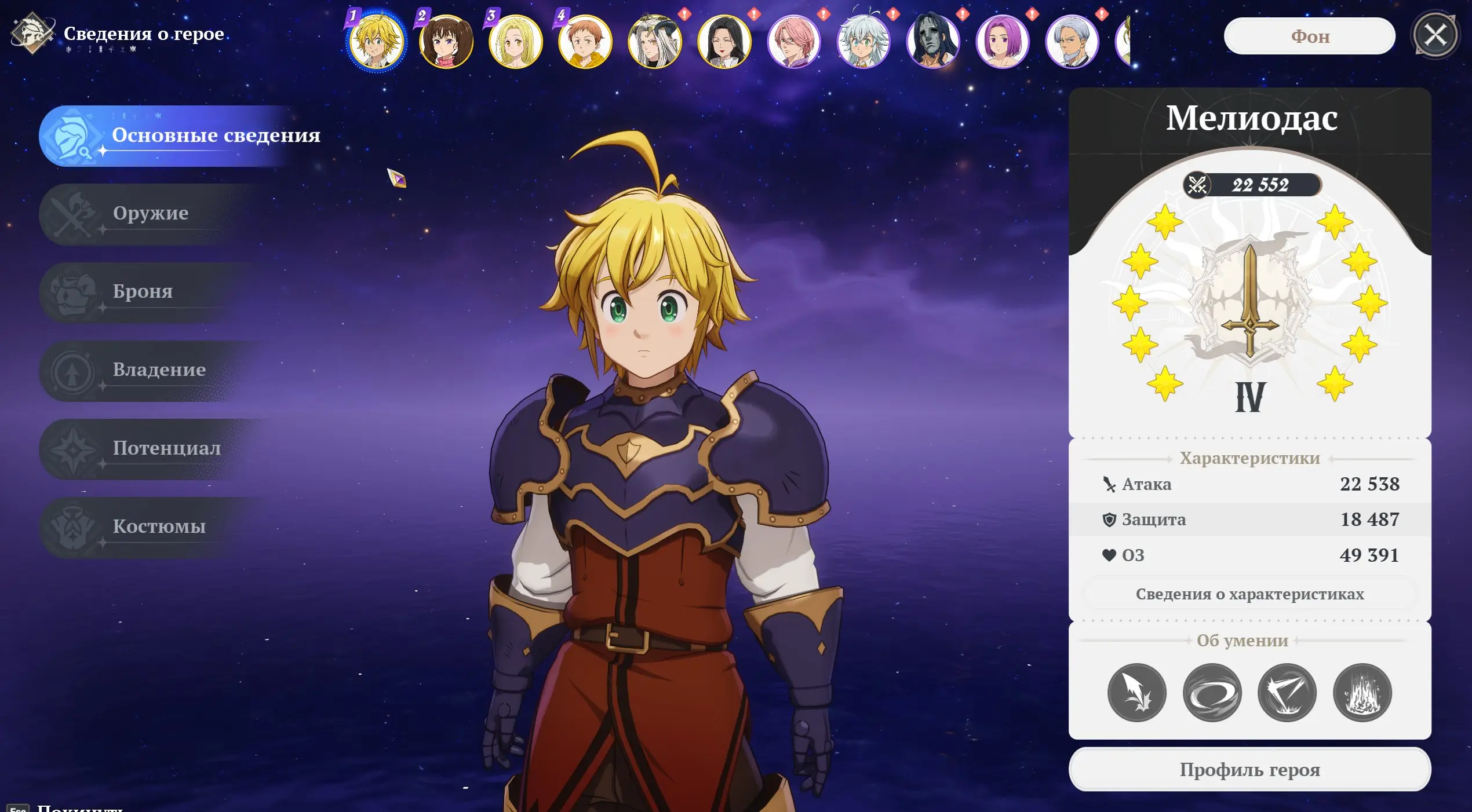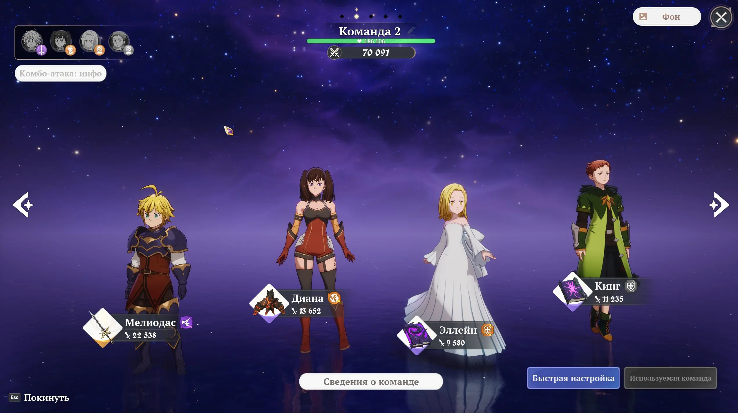EU. Meliodas C10, King C6, Diana C4, Ellain С3, Drake, Gila C4. 12000+ Fragment of Stars