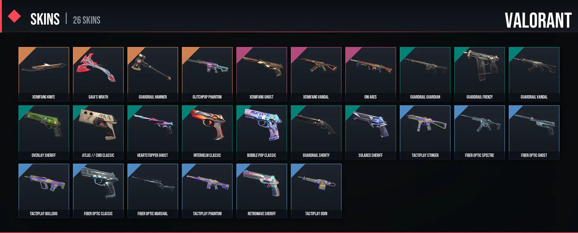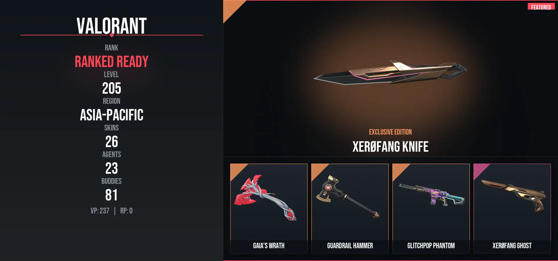 26 Skins / 15400 VP SPENT / XERØFANG Knife / Glitchpop Phantom / Oni Ares
