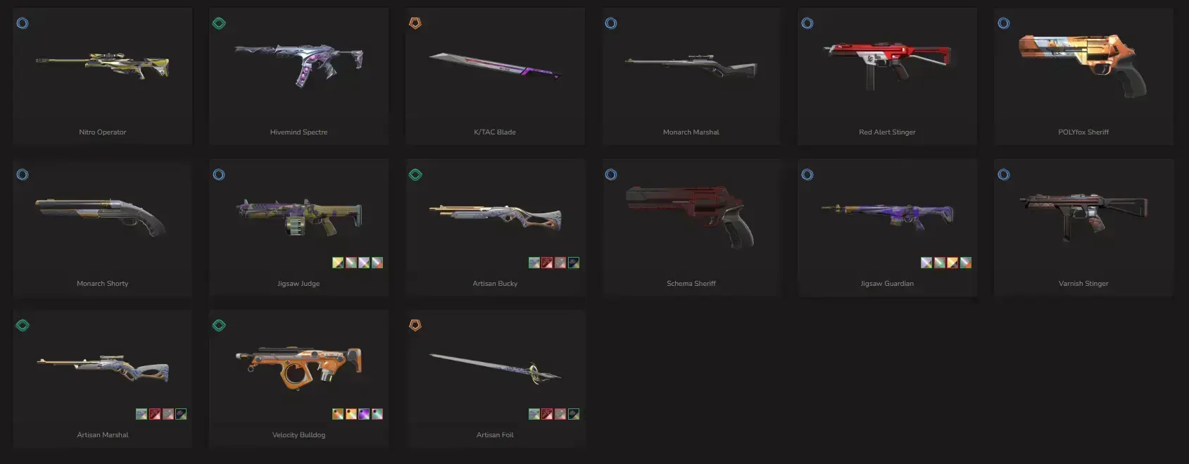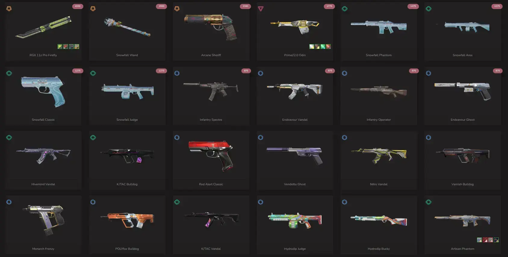 63 SKINS | 5 KNIFE | ARCANE SHERIFF | INFANTRY OPERATOR | SPECTRE | PRIME//2.0 ODIN | K/TAC BLADE | VANDAL | OPERATOR | BULLDOG | SHERIFF | VELOCITY KARAMBIT | BULLDOG | SPECTRE | SHORTY | PHANTOM | RGX 11Z PRO FIREFLY | SNOWFALL