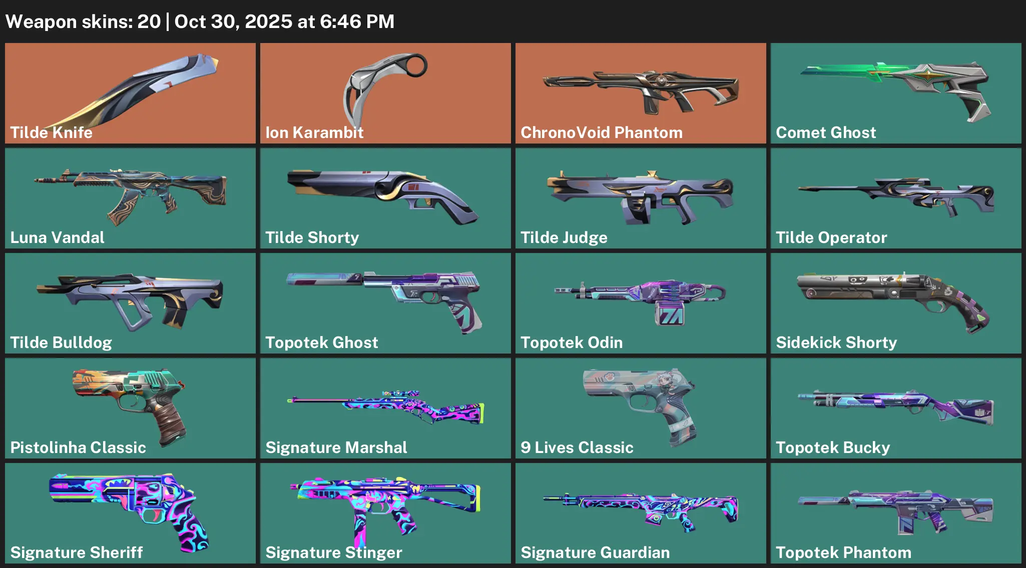 EU | 20 Skins | exp GOLD 1 | Ion Karambit | ChronoVoid Phantom | Tilde Knife | Topotek Phantom | Tilde Operator | #ZLA8587 | #MBFN