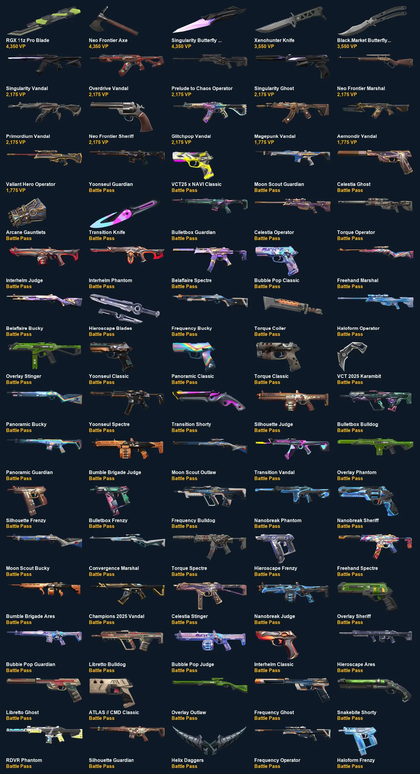 [EU] VCT 2025 Karambit + Champions 2025 Vandal + Arcane Guntlets + Primordium + Glitchpop + Magepink + Aemondir + Overdrive + Singulariy Vandals
