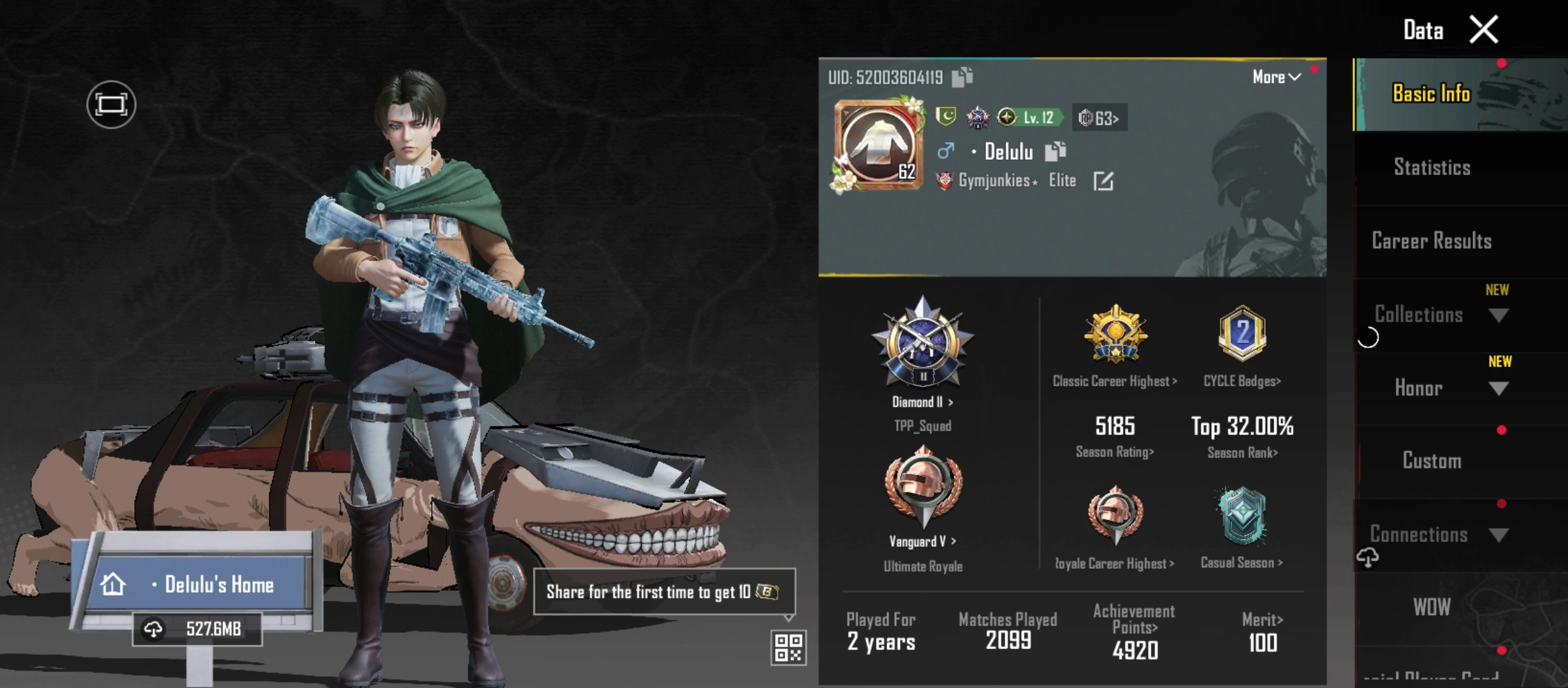 #G158|Lvl 62|AMF IV|68 SET(13 MYTHIC)|2 GODZILLA SET|63 WEAPON(10 LAB)|GLACIER M416 LVL 3|UNICORN M762 LVL 4|12 VEHICLE|DIAMOND MIDEAST