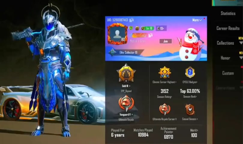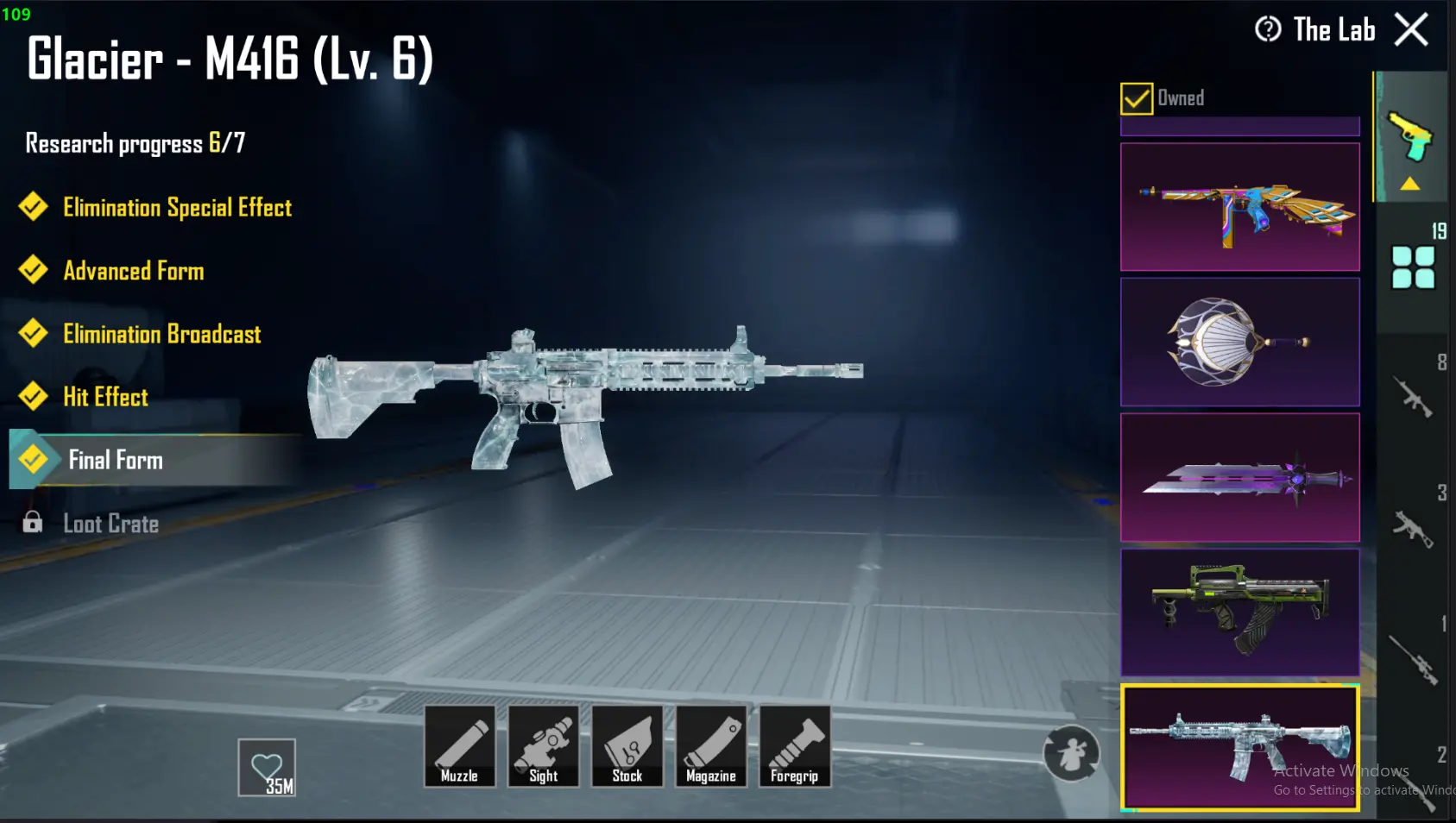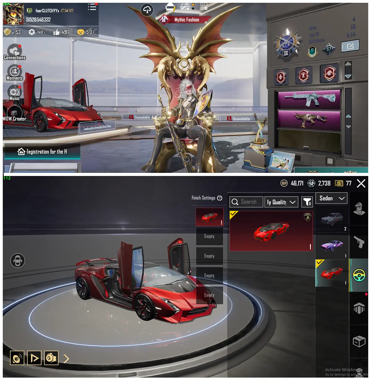 โจ M416 Glacier LvL 6 (Fully upgraded with all attachments) โก Driven X-Suit LvL 2 โ Rare Legendary Outfit ๐ 1 Mythic Sports Car ๐
